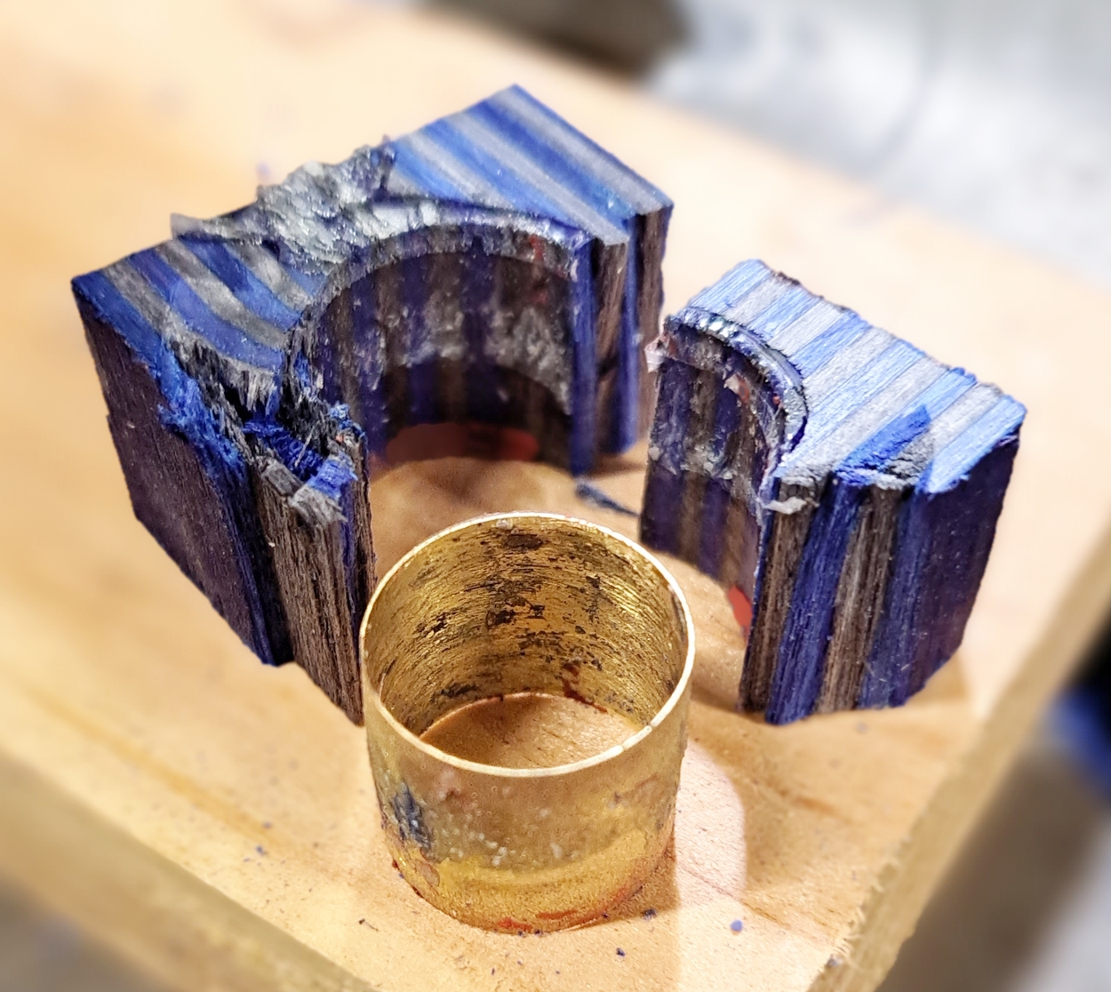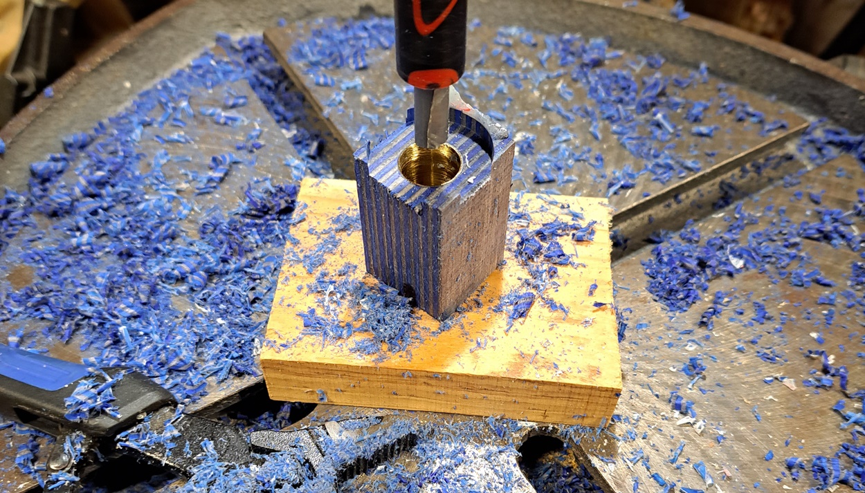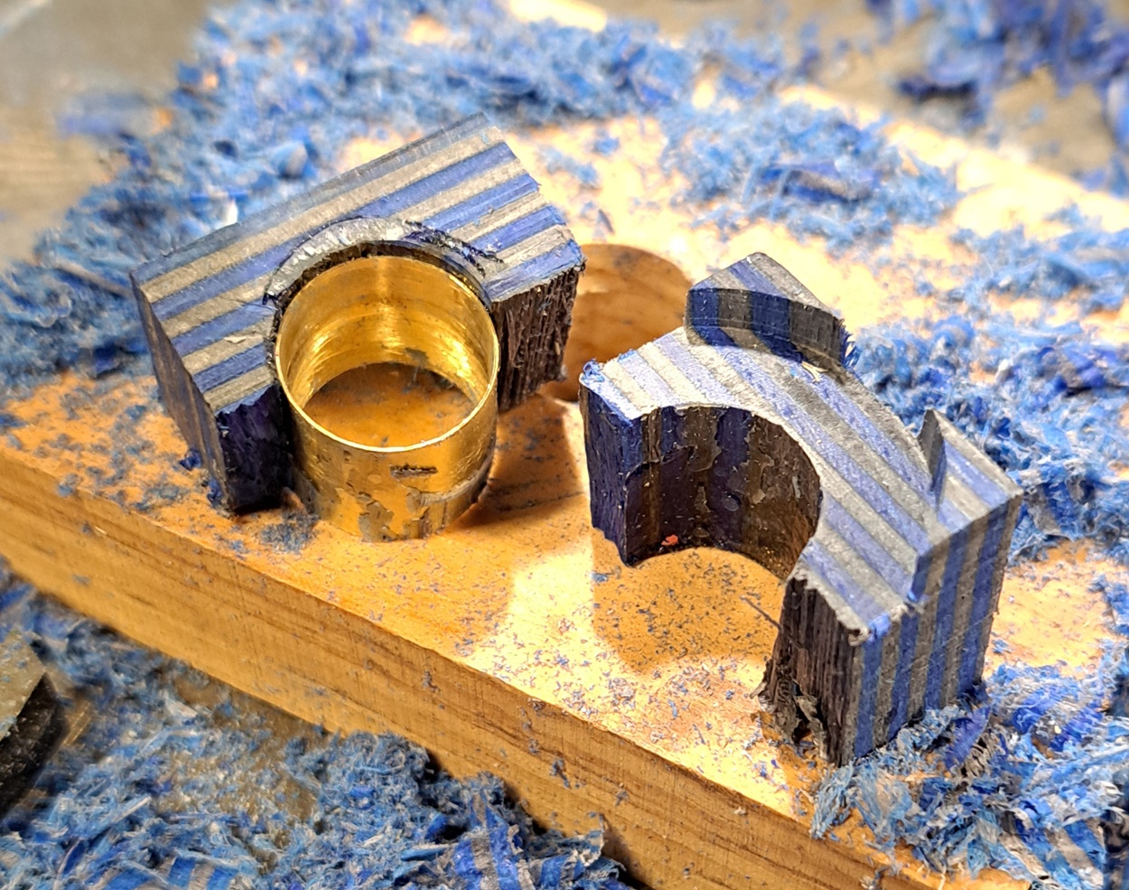 I've been working on the chrome kit, using SpectraPly. I've broken two pieces for the cap so far, during trimming. I think I'm going to use a piece of black acrylic for the cap instead, since I've already got the body piece of Spectraply trimmed and ready to turn.