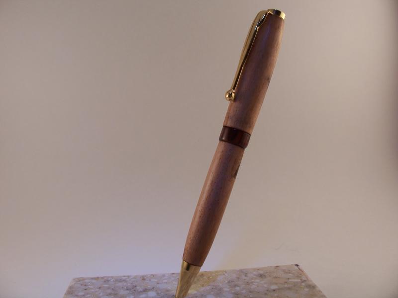 This is my current creation, it's a modified slimline made from mesquite wood, I had a piece of cocobolo left over from another project so I made the centerband out of that. Again all comments welcome.