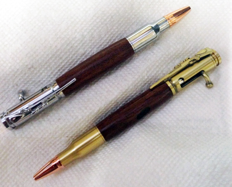 At this rate, we will soon have a congregation full of pen turners. Another member of our church came over this afternoon to turn a couple of pens. Here's his first two...