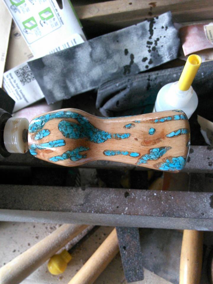 turquoise, kinda crushed up, its a learning curve. I failed to crush the stone up small enough in the begining but still am somewhat happy with it over all. and alot of CA hahaha