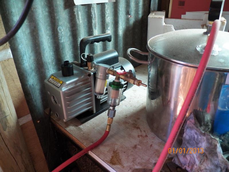The pics are from my first oil sump removal and after the first 6 months of stabilizing gallon after gallon, I never had/worked with a vacuum pump before, I wasn't sure how often the oil should be changed (was clear oil, originally) and most importantly, I had no idea of how much moisture these pumps suck 016 (2).JPG so, I kept wondering why the oil level would go up and not down, to be point where, on releasing the vacuum, my primary filter (I had 2 at the time) would get full of oil...! 001.JPG