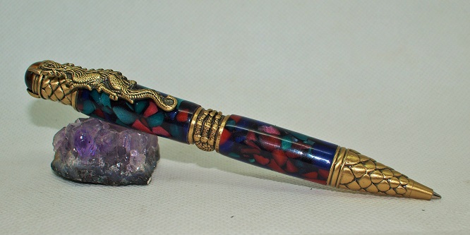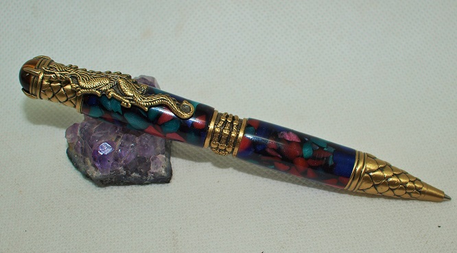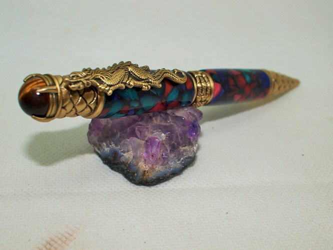 Here is an Antique Brass Dragon pen from PSI made using stained glass effect Acrylic, micro mesh and T Cut Finish