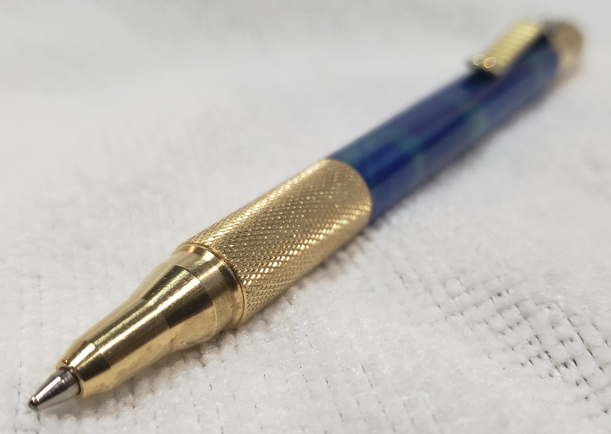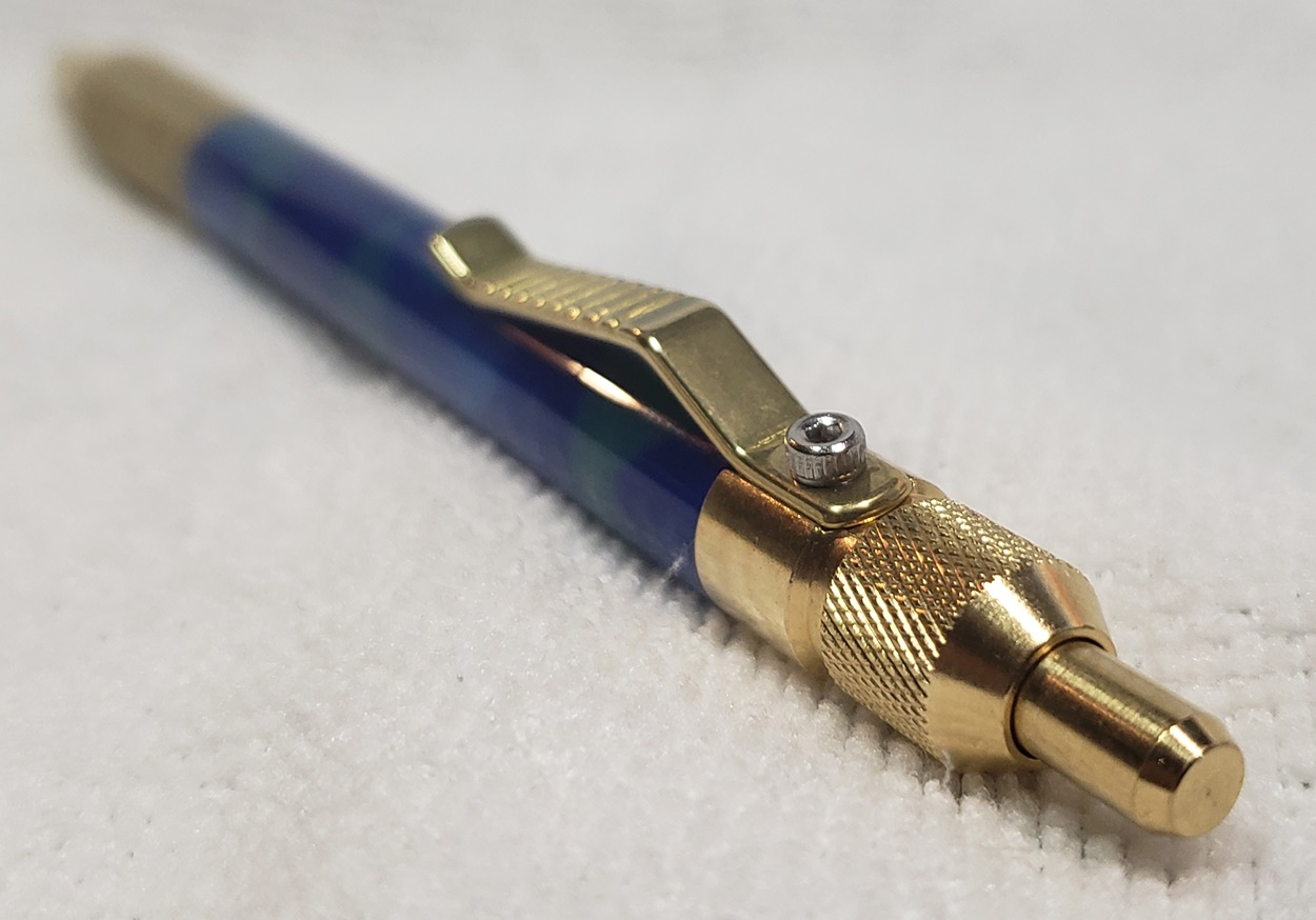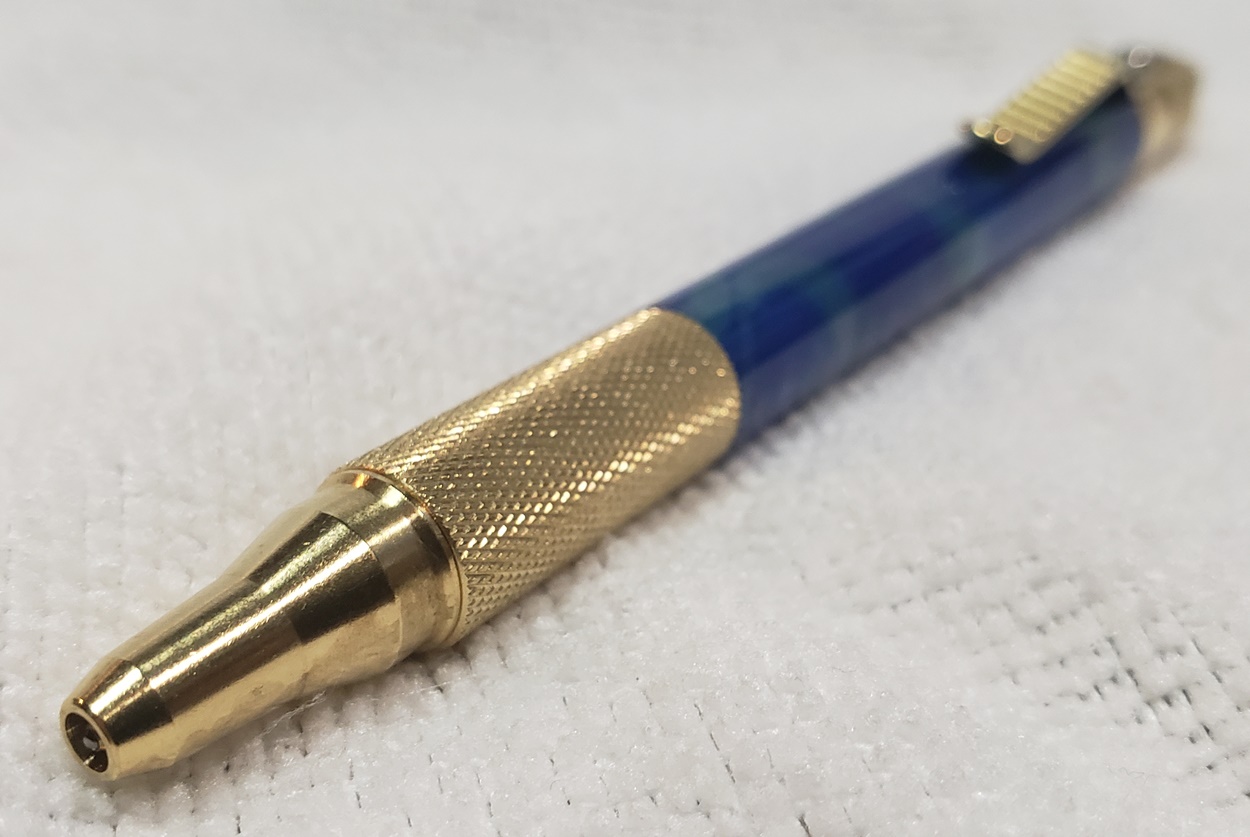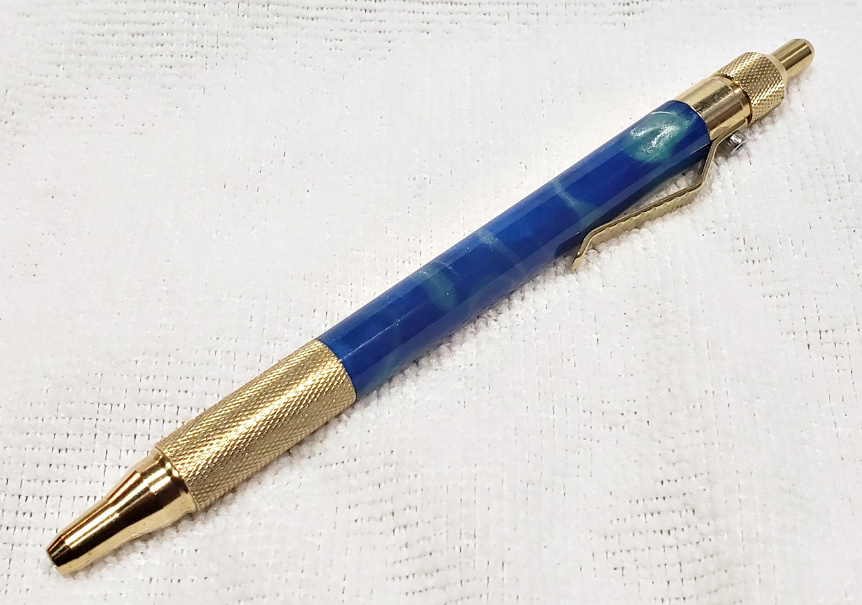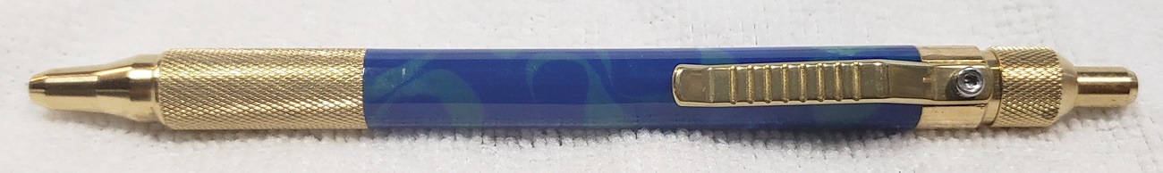 This is my second PSI Anvil pen, in brass this time. The blank is called Earth. I purchased both from Exotic Blanks. One thing I noticed, is that the kit on PSI's website shows it with an aluminum clip, but this came with a brass clip. I didn't know if I'd like the brass kit with this blank, and I'm still not sure. But it is a good looking pen regardless.