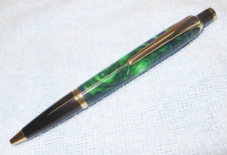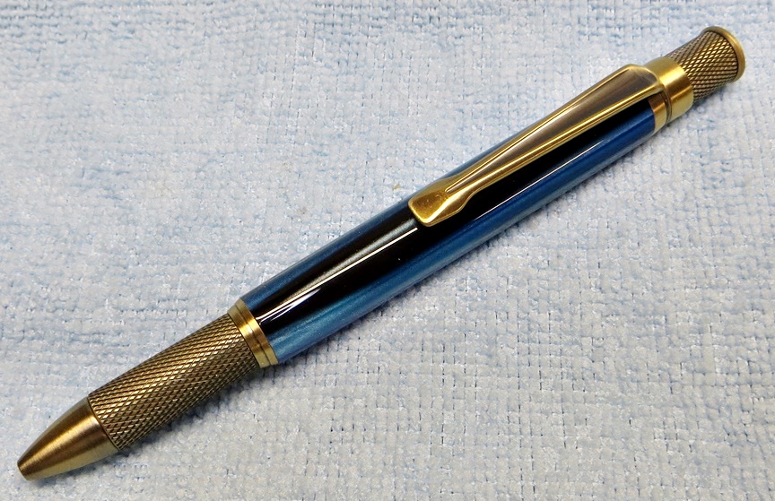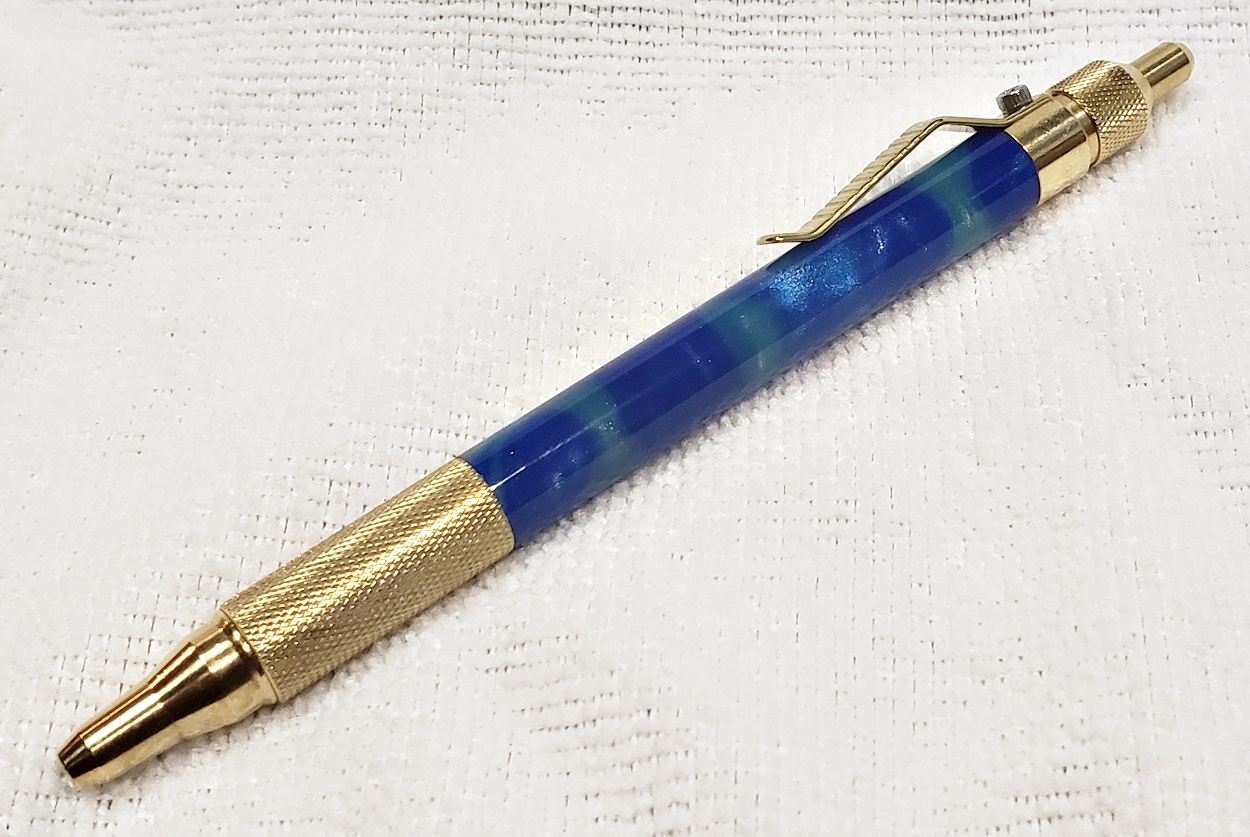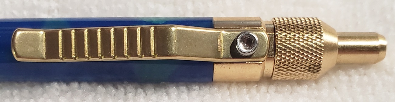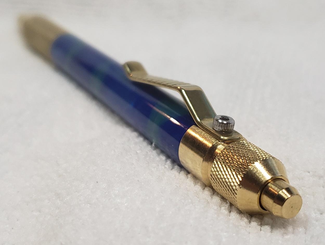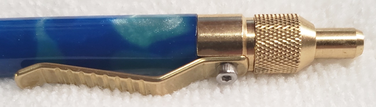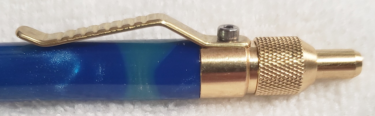 This is my second PSI Anvil pen, in brass this time. The blank is called Earth. I purchased both from Exotic Blanks. One thing I noticed, is that the kit on PSI's website shows it with an aluminum clip, but this came with a brass clip. I didn't know if I'd like the brass kit with this blank, and I'm still not sure. But it is a good looking pen regardless.