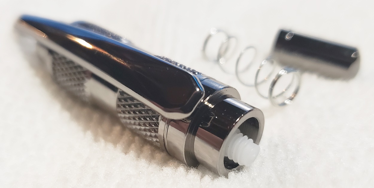 With a sleek, modern yet industrial style and incredibly durable performance, this Anvil click pen is perfect for everyday use. Features an ultra-reliable, 100% all metal German engineered Schmidt click mechanism with smooth, quiet performance. The ultra-fine knurl texture on the pen end and tip mak