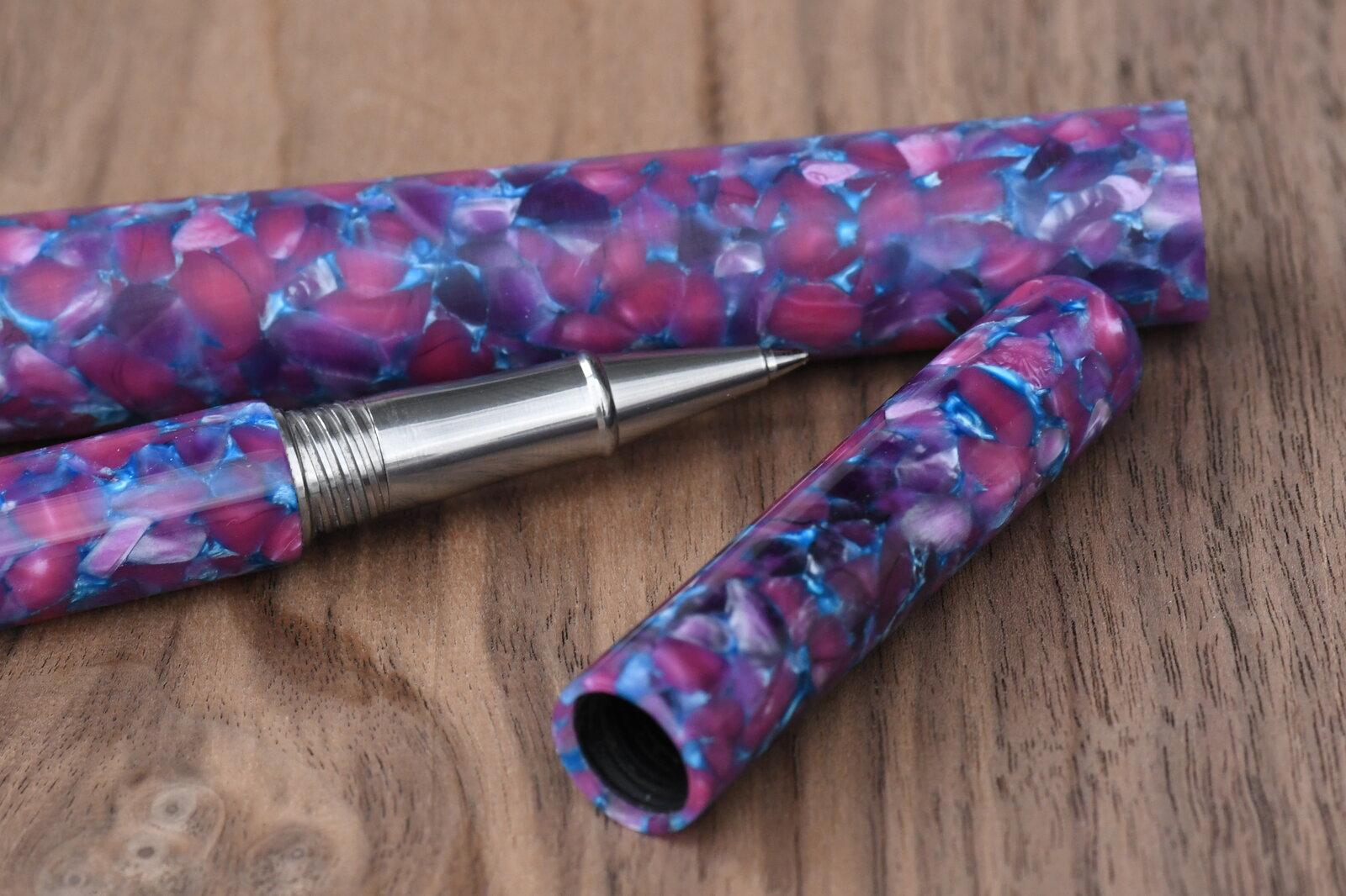 This is the Apollo kit from Kate at Bullseye Turning Supply. I bought the blank from another member here, Jontello. It's going to be a Mother's Day gift, so that put a little extra stress on top of turning a new pen kit. I'm very pleased with how it came out and am glad I bought more than one kit! Thanks for looking.