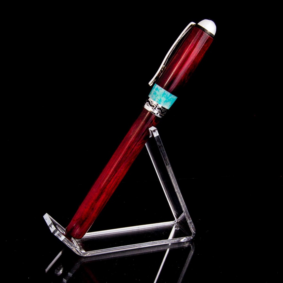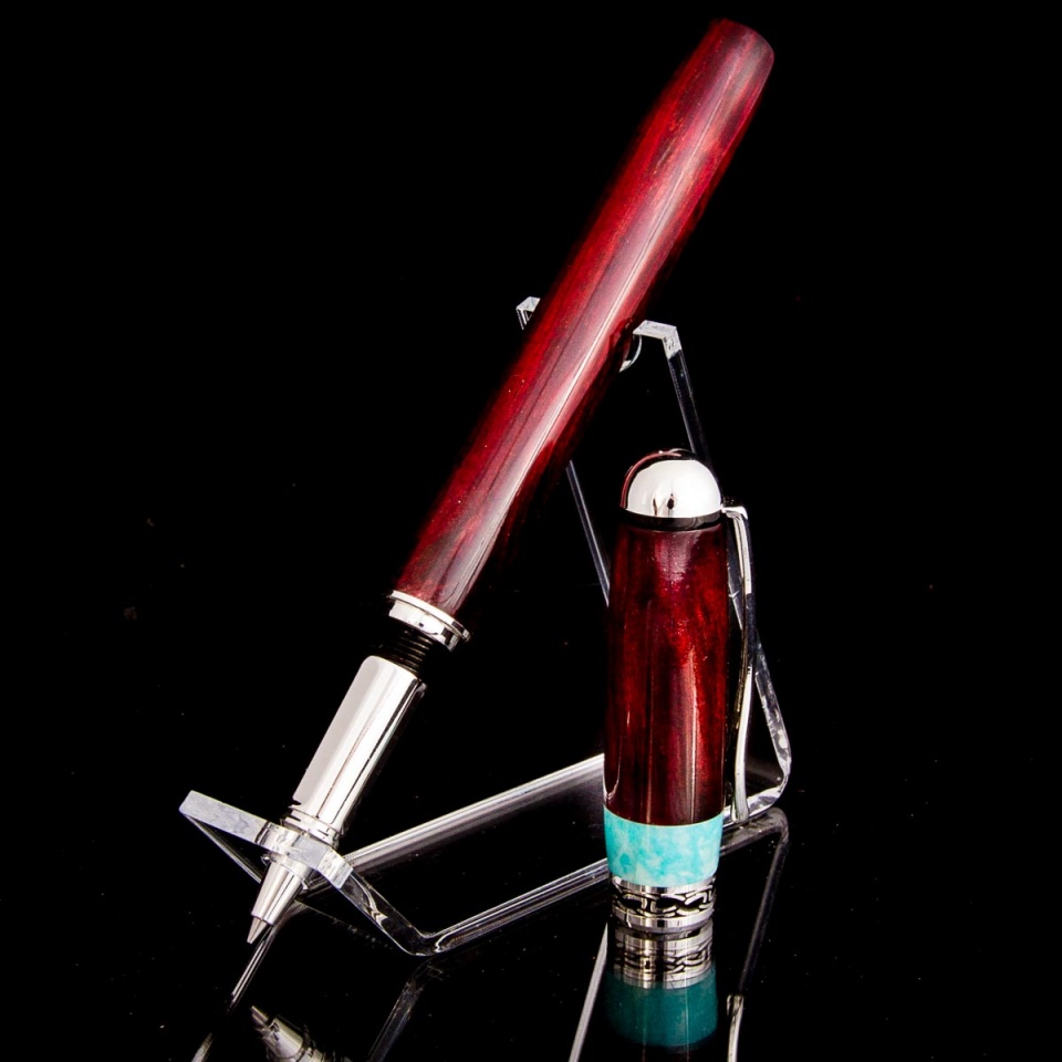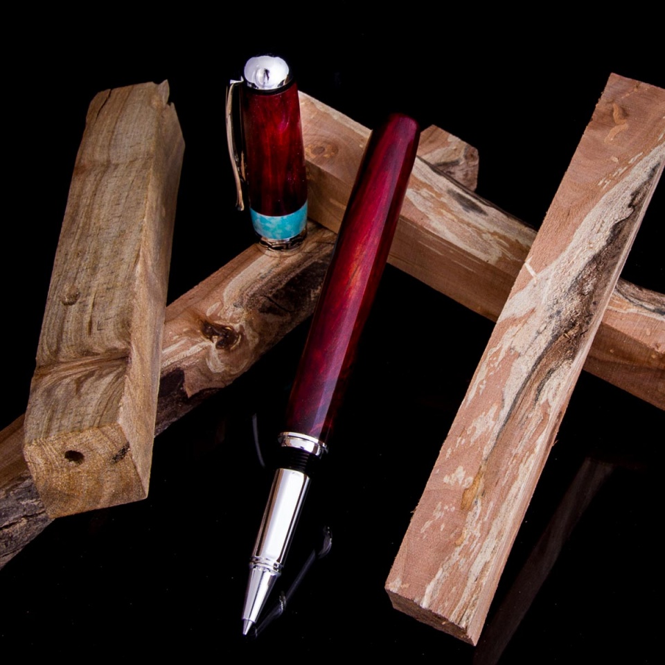 I had some really good luck with a crab apple limb last year and came across another last week that I cut up into blanks. The blanks looked really interesting so I was anxious to turn one and see what I had. The wood was a bit punky, so I stabilized red and orange. When I was drilling the cap, the end tore out (gotten get that 15/32" sharpened...
