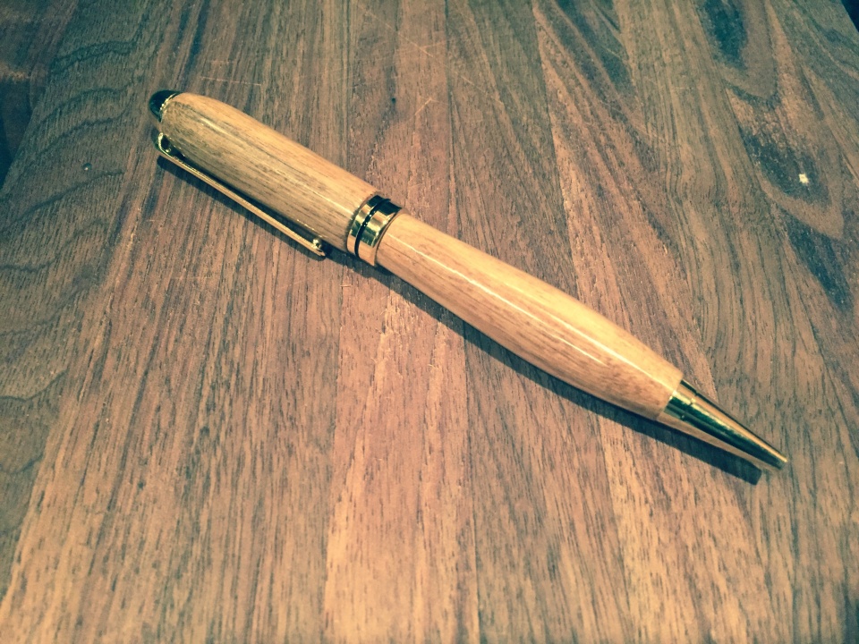 Great shape! I like how you tapered down to fit the end into the tenoned ring and flared it out a bit before tapering back to match the nib! Looks great!