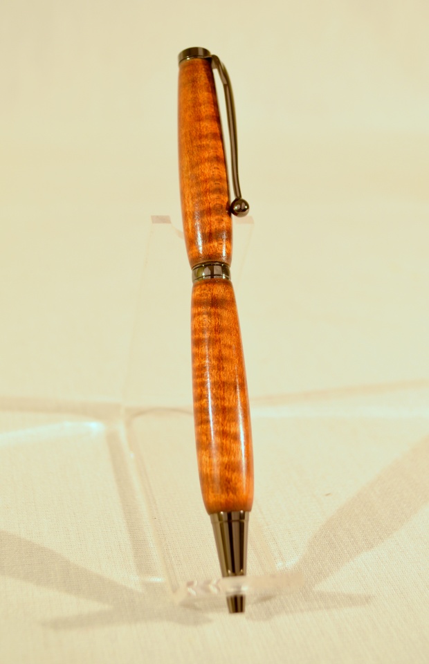 Been wanting to try the "old fashioned" method for popping the curly maple. Finally bought some aqua fortis from Track of The Wolf and gave it a try. I'm a believer now....looks great and wasn't that hard. Very surprised that with this method (and assuming the right piece of wood) the curl goes completely around the pen. With oil only it did not do that.