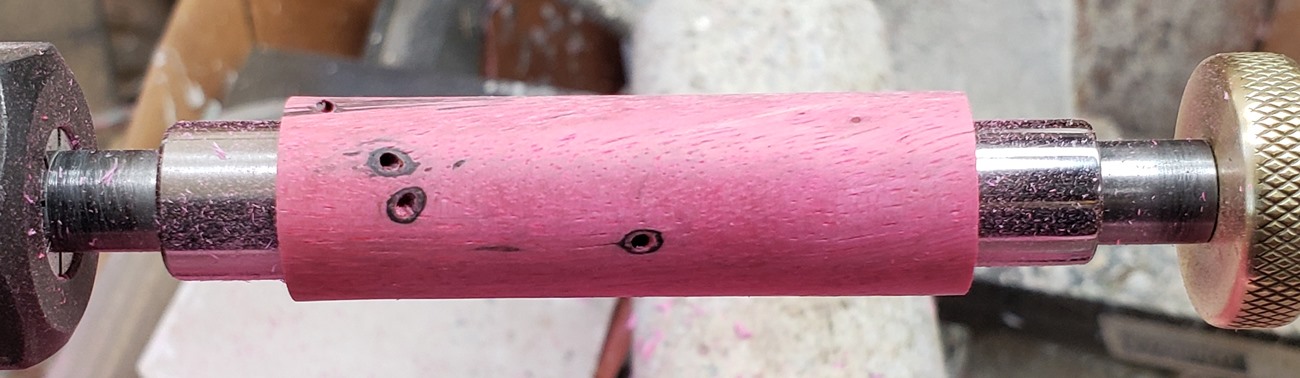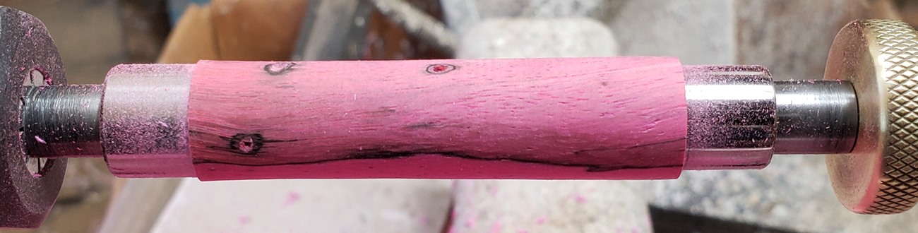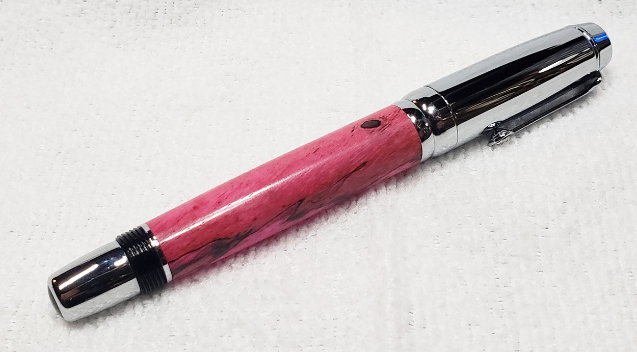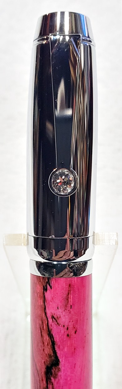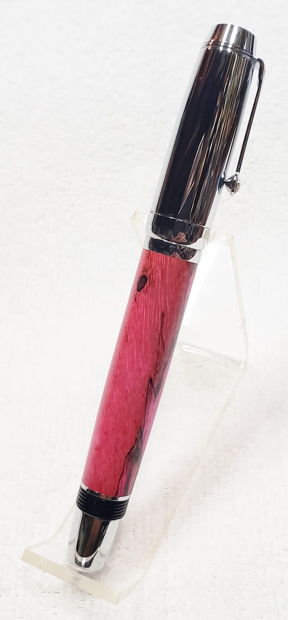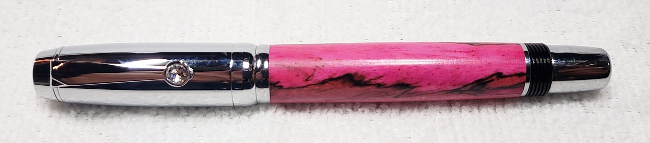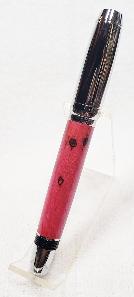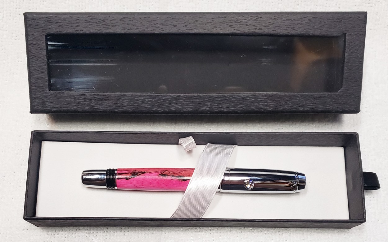 An Arete rollerball from Woodcraft. The blank is a stabilized dyed spalted tamarind in pink, also from Woodcraft. Finished with Pens Plus. This will be auctioned off at work, with all of the proceeds donated to the Susan G. Komen organization, in the name of one of the ladies who passed away from breast cancer last year.