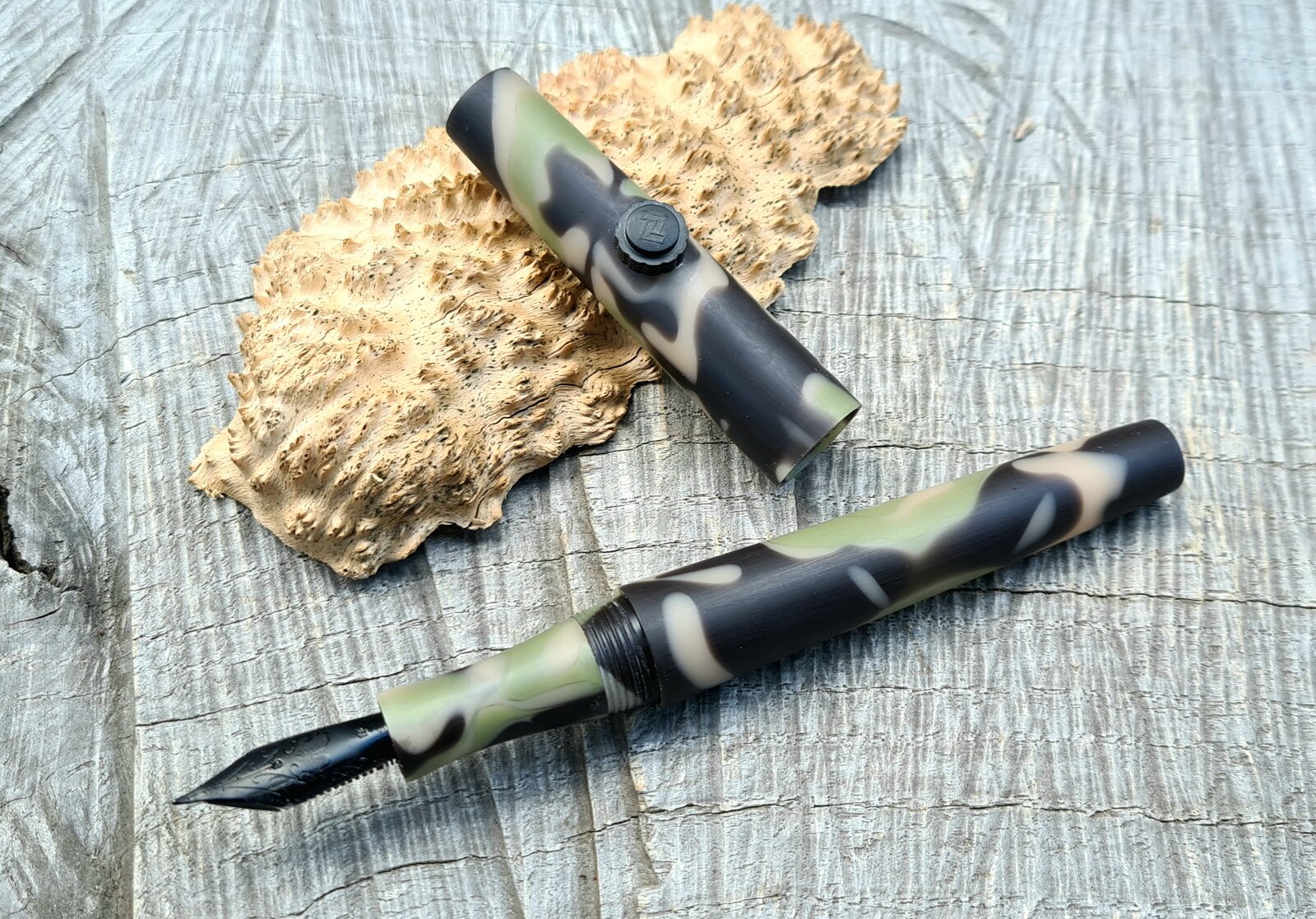 Matte finish on the acrylic, feels really nice in the hand. He is adding a nib from another pen, a black flex nib, so for the photo shoot, I used a black sharpie on my shop nib.