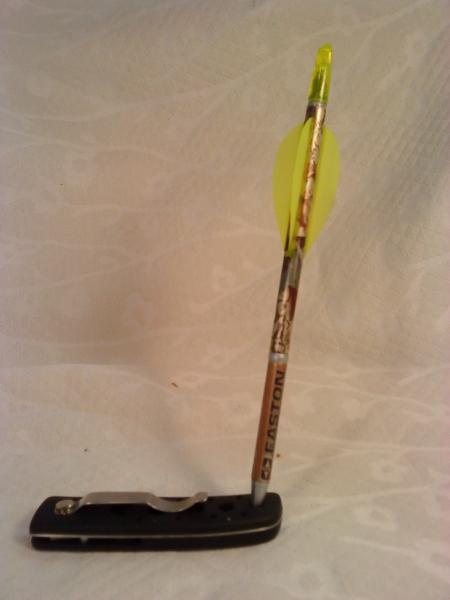 This was my 1st attemp at an aluminum arrow pen. Made it for a friend of mine whose kid is really into bows right now. He asked me to add the nock and fletchings to make it look like a true arrow. The hardest part was aligning the fletchings. It was a fun project :smile:. Funny how ever since I started making pens, I now look for new materials to make pens out of, this has turned into a real cool hobby. Thanks for looking. Comments always welcome.:peace: