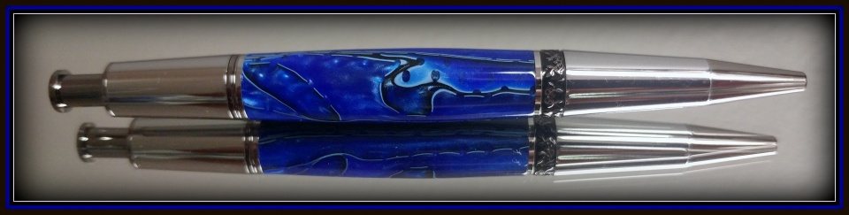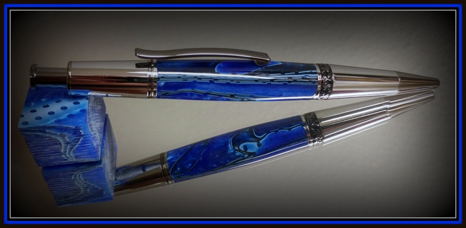 Following CREID's suggestion, I chose the same blank to make the third of four commissioned pens for the customer who said to make it silver, make it masculine and left it up to me to choose the rest. I've seen some comments that the Aero is a nice lady's pen and I agree, but I like the size and heft of this pen and the blank makes it masculine enough to suit my taste. Hopefully the customer will agree. But no worries, I'd be happy to keep this one for myself.