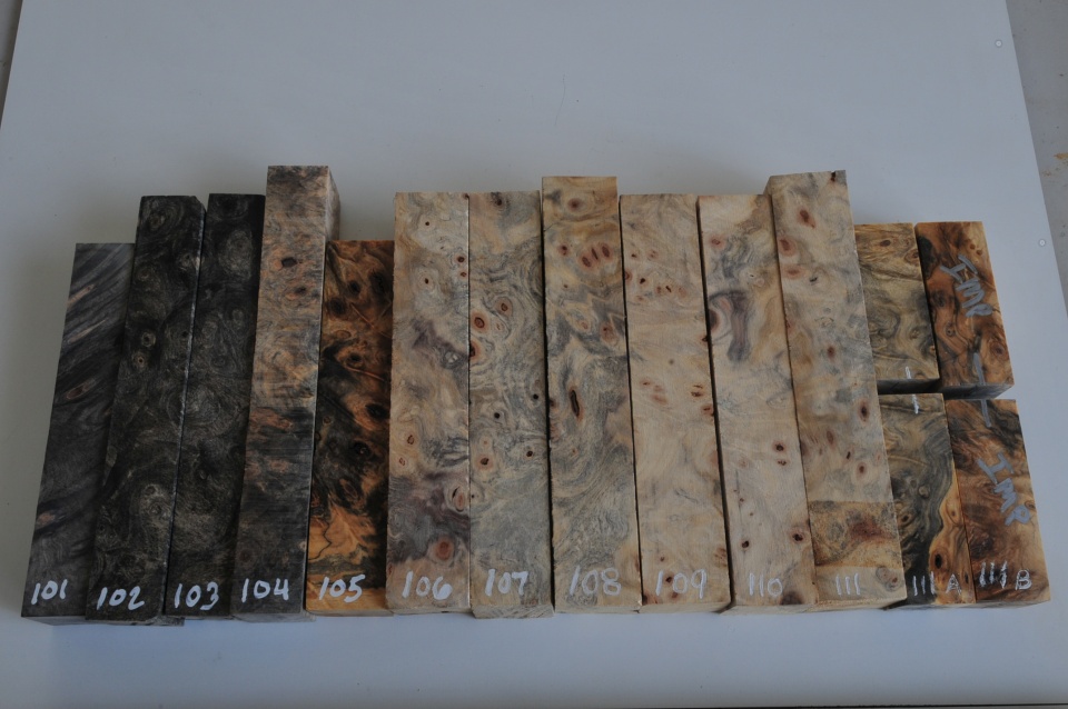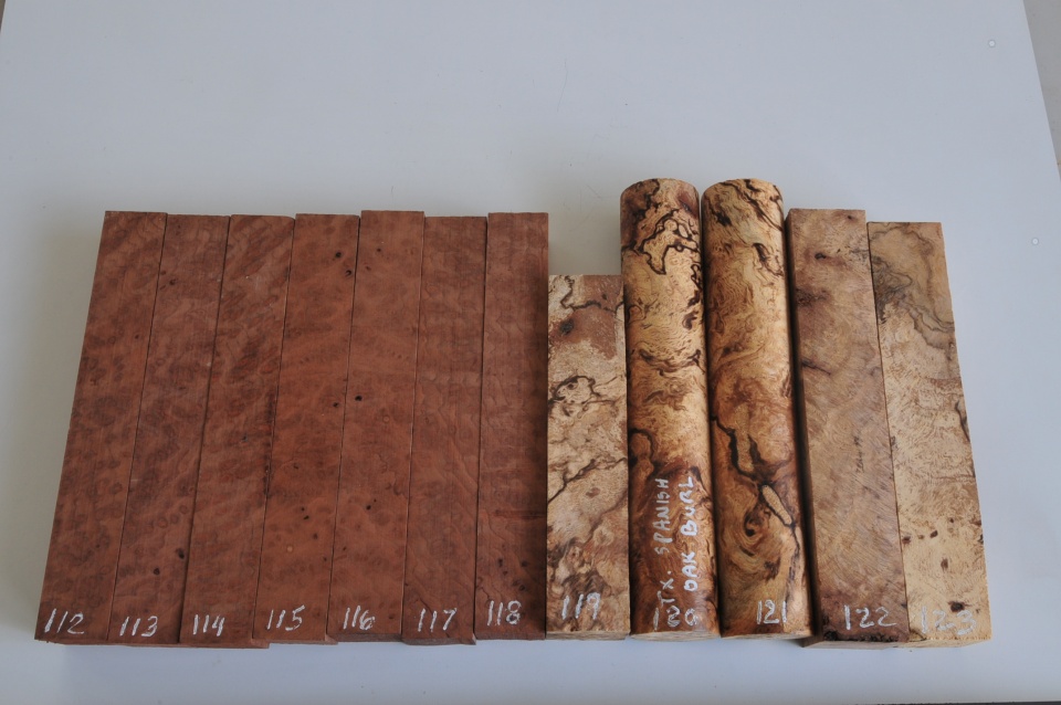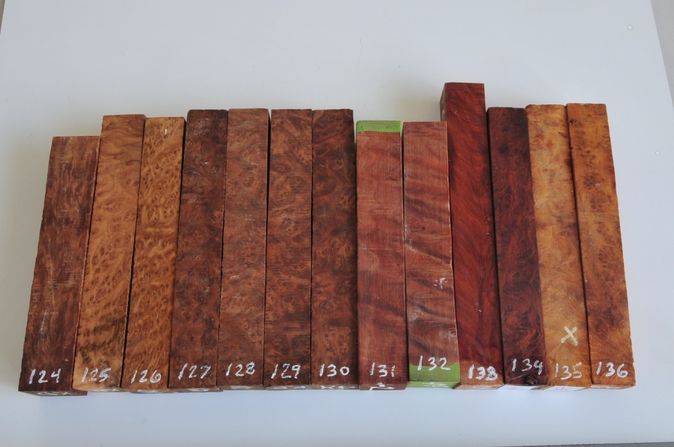 #127-130 Rib Fruited Mallee 3/4" sq. x 5 1/4" long. (eyes on all 4 sides, stabilized) $14.00 each.