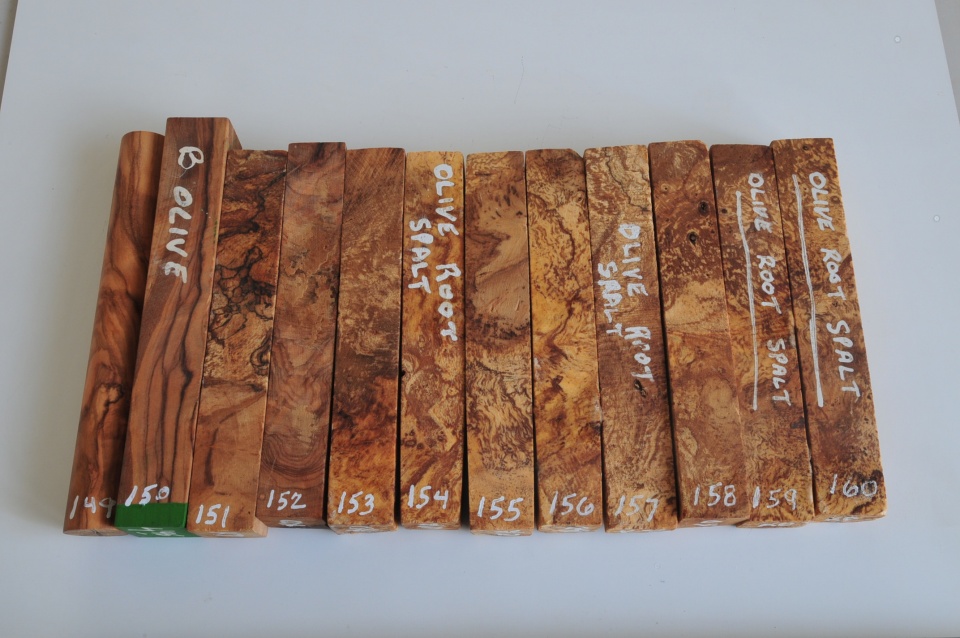 #153-158 Spalted Olive Root 13/16" sq. x 5" long. (stabilized, these are good solid blanks which make awesome pens) $14.00 each.