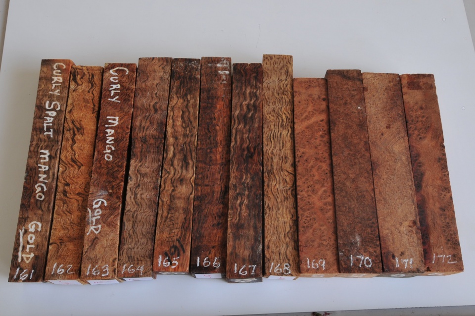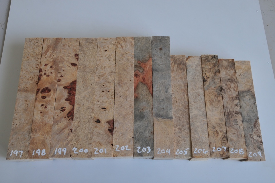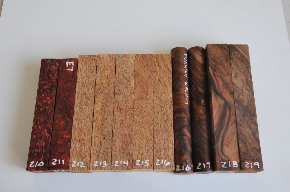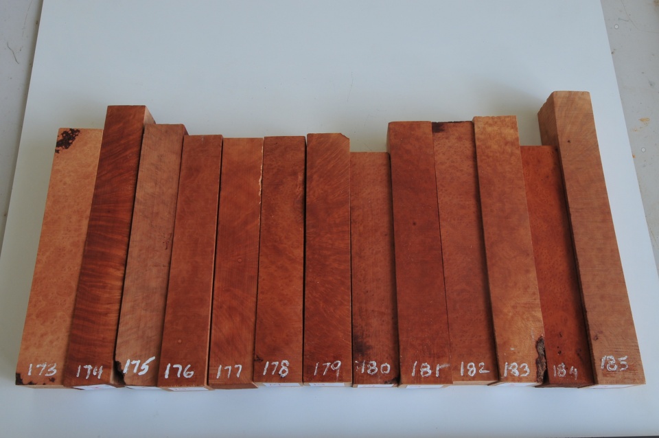 #173-185 13/16" to 7/8" sq. x 5" to 6" long. (all solid, no cracks and dry, lots of figure on these blanks) $14.00 each. (173,174,181,182, sold)