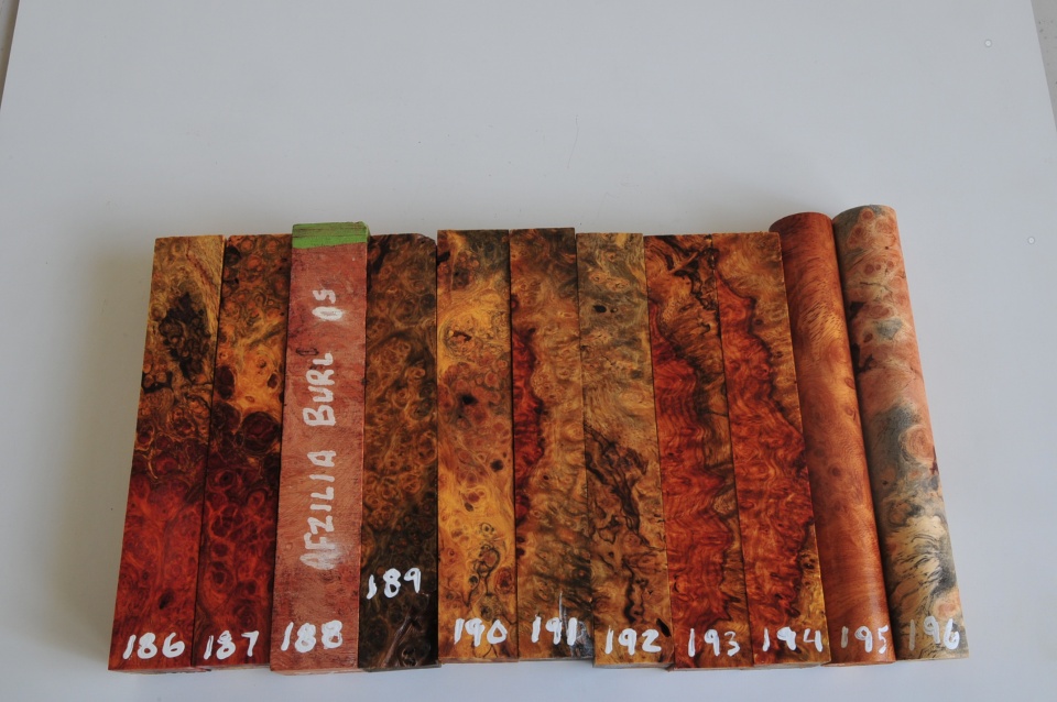 #196 Afzelia Burl with Sapwood 3/4" dia. x 5 1/4" long. $9.00