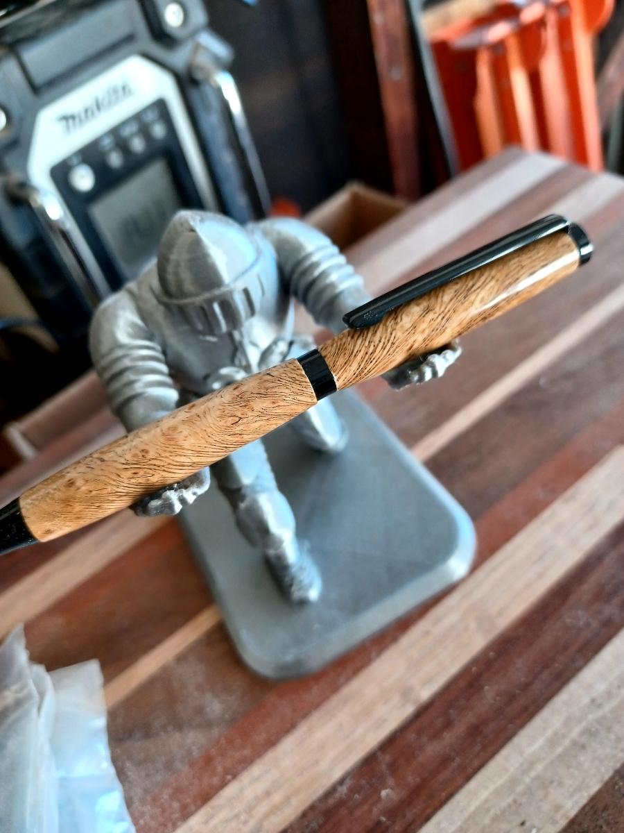 I was given some new wood by a buddy at https://www.lumbercycle.org. He likes to display things his customers make and asked if I would make a pen for the shop. Turned and CA finished....