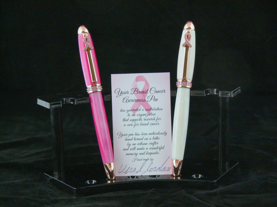 These area couple of Breast Cancer Awareness pens I turned for the local Women's Club charity auction. The proceeds go to Breast Cancer research.