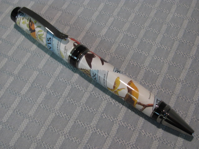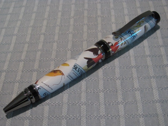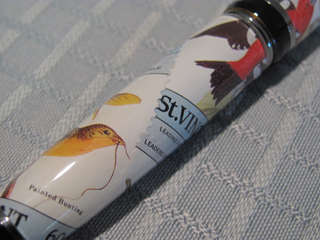 Here's how my cigar pen turned out using these beautiful bird stamps from Nevis & S.Vincent.