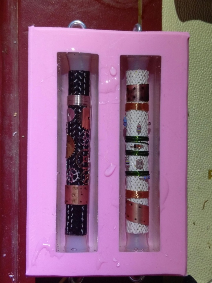 Most enjoyable day. Especially when your kids take an active interest in the things you enjoy. My girls designed, casted and turned these pens. Little guidance from me. Casted them last week and turned them this week.