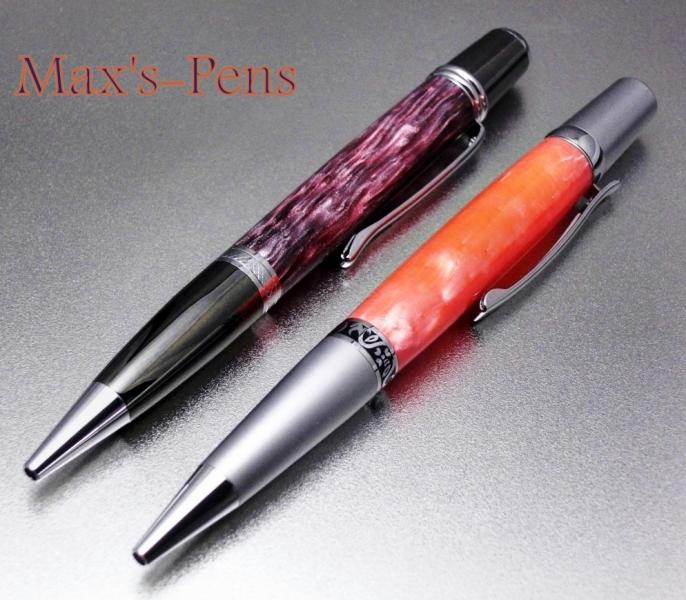 it amazes me that the back painting of a blank can make such a difference. i knew it and have haeard others talking abouit but had not personally noticed yet. well today i completed the second of 2 pens with the same blank just painted differently. NOw i know that even the same color commercial balnks will vary a little bit, but these two were very close out of the bag. they are both Woodcraft abalone blanks. the click pen was back painted and tube painted blask. the regular cigar was back painted and tubes painted white. there difference is amazing. take a look.