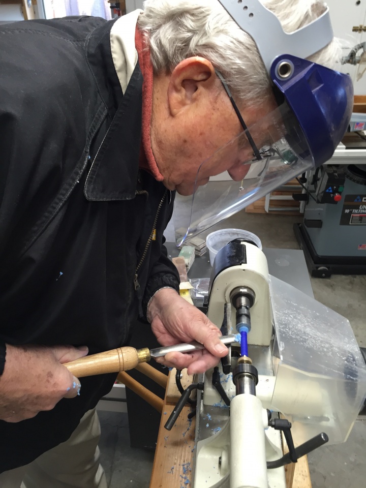 On a separate topic, and the subject of the last photo, today was my turn to pay it forward, having been introduced to this hobby by a dear friend. I invited a fine gentleman to come and learn how to turn an acrylic pen. The last picture is of a very happy gentleman getting acquainted with a passion shared by members of this forum. At one point, he exclaimed "Woo-ee! Is this fun!"