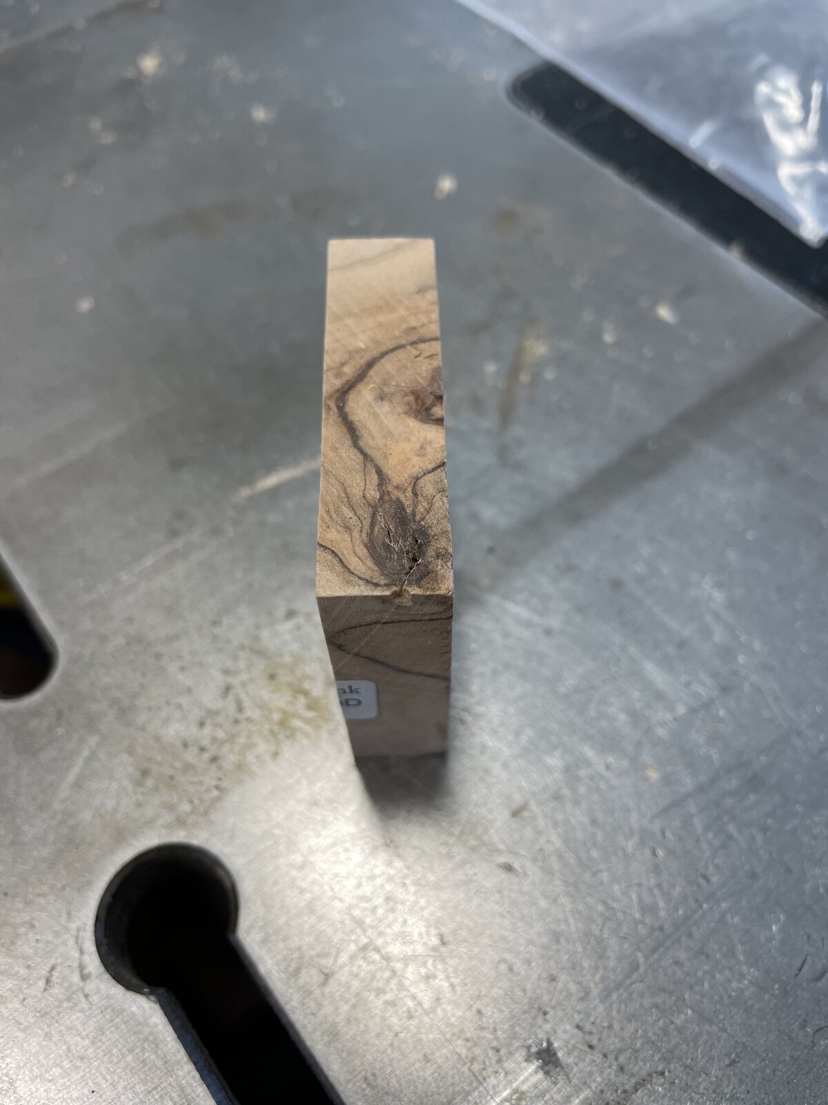 Sometimes the bandsaw is the best tool. It is for cutting wooden ring blanks and often pen blanks. Hands free and safe. I'll probably add additional wood behind the end of the kerf and maybe use the Microjig stop to end the cut after just the blank is cut. It fits in the miter slot and can be tightened to make it stationary.