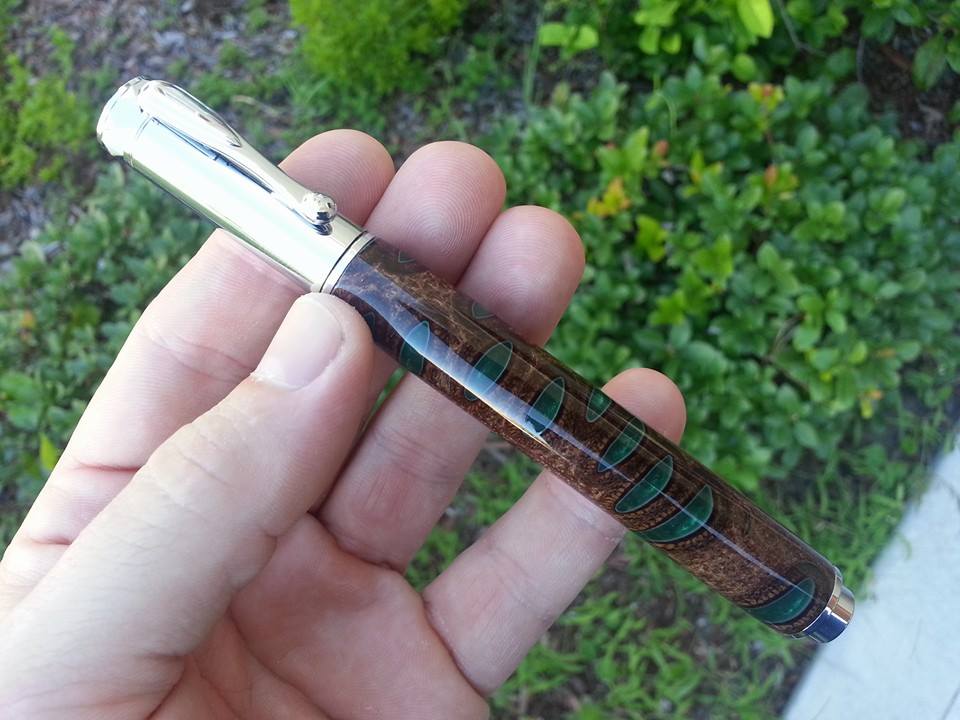Hey folks. I'm finally back turning pens after moving to FL, building a new lathe stand, and starting my new job. This is my first one in my new garage. It's a Chrome Zen with my first Banski pod/Alumilite blank I poured. As always, comments and suggestions are always welcome.