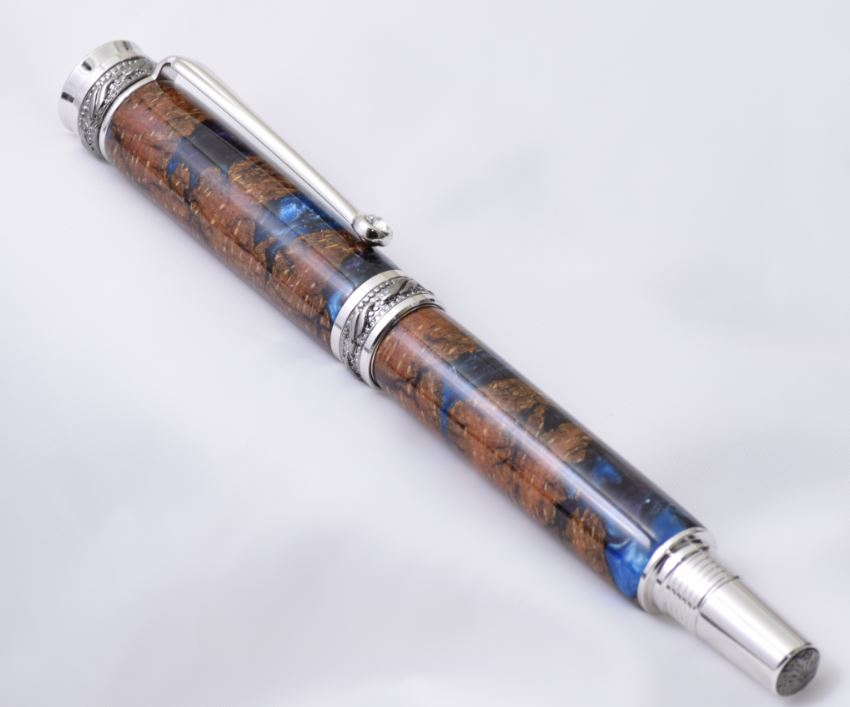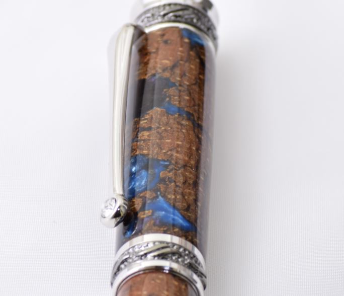 I was playing try to play with the reflection of the finish a bit on here and it washed out some of the nice colors the blank has. I'm actually pretty surprised how dense this blank was - spent a lot of time sharpening. Also with the differences of material, I was noticing if i was more forceful with the cutting, it would get oddly out of round. I ended up going back over the cap portion after i'd finshed sanding/polishing and building up some more CA to get the fit just right. Hat's off to George - I think the blank is pretty spectacular.