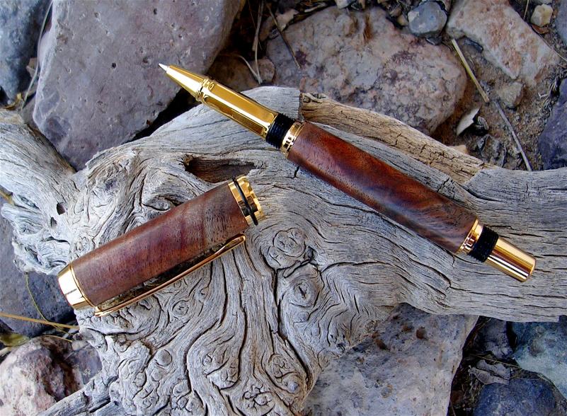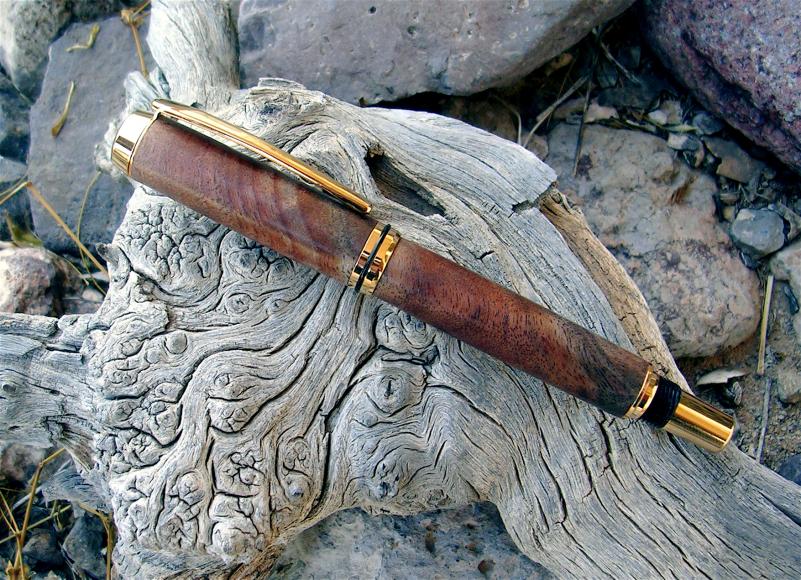 This pen is made with a local walnut that grows in New Mexico. It is called Mimbres Walnut. The timber was air dried for several years and has great color variations.