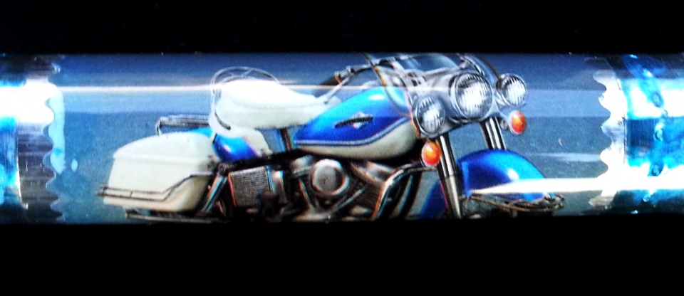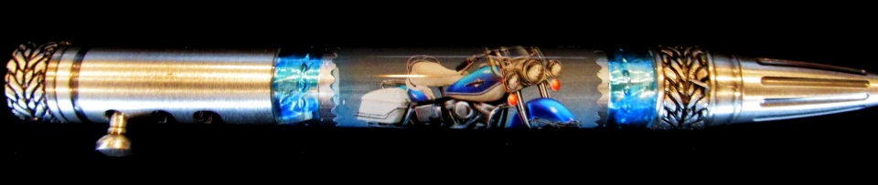 In the Bash this year, Cody (Cwalker935) submitted a cast pen of a motorcycle chopper that I really liked. When I mentioned this to him, it took about 2 seconds for him to offer to send me one. We agreed to trade his blank for a custom travel mug...he came out on the short end of the stick! He cast my favorite bike, a Harley Bagger postage stamp on a gear shift blank. When it arrived, 3 more blanks fell out of the package.