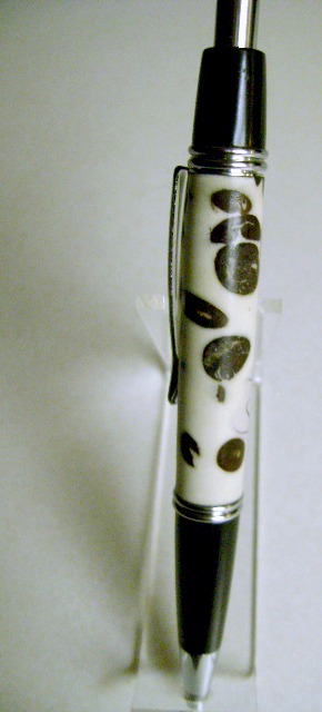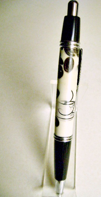 ....coffee beans that is! I received the blank from IAP member Dave Cern. Nice blank and very nice to turn. I added a cup of coffee to stay within the spirit of the java beans. This too is a new Le Roi Clicker, very nice pen and the tubes are interchangeable with his finial twist version. Just couple of point and shoot quickie shot but it shows up well enough for this post. Thanks Dave and Mr.Smith......Be well..........Jan