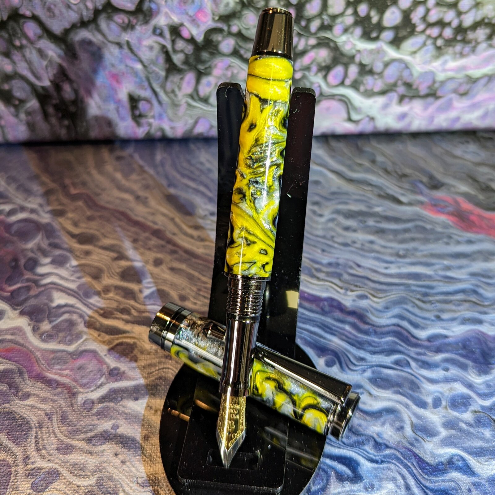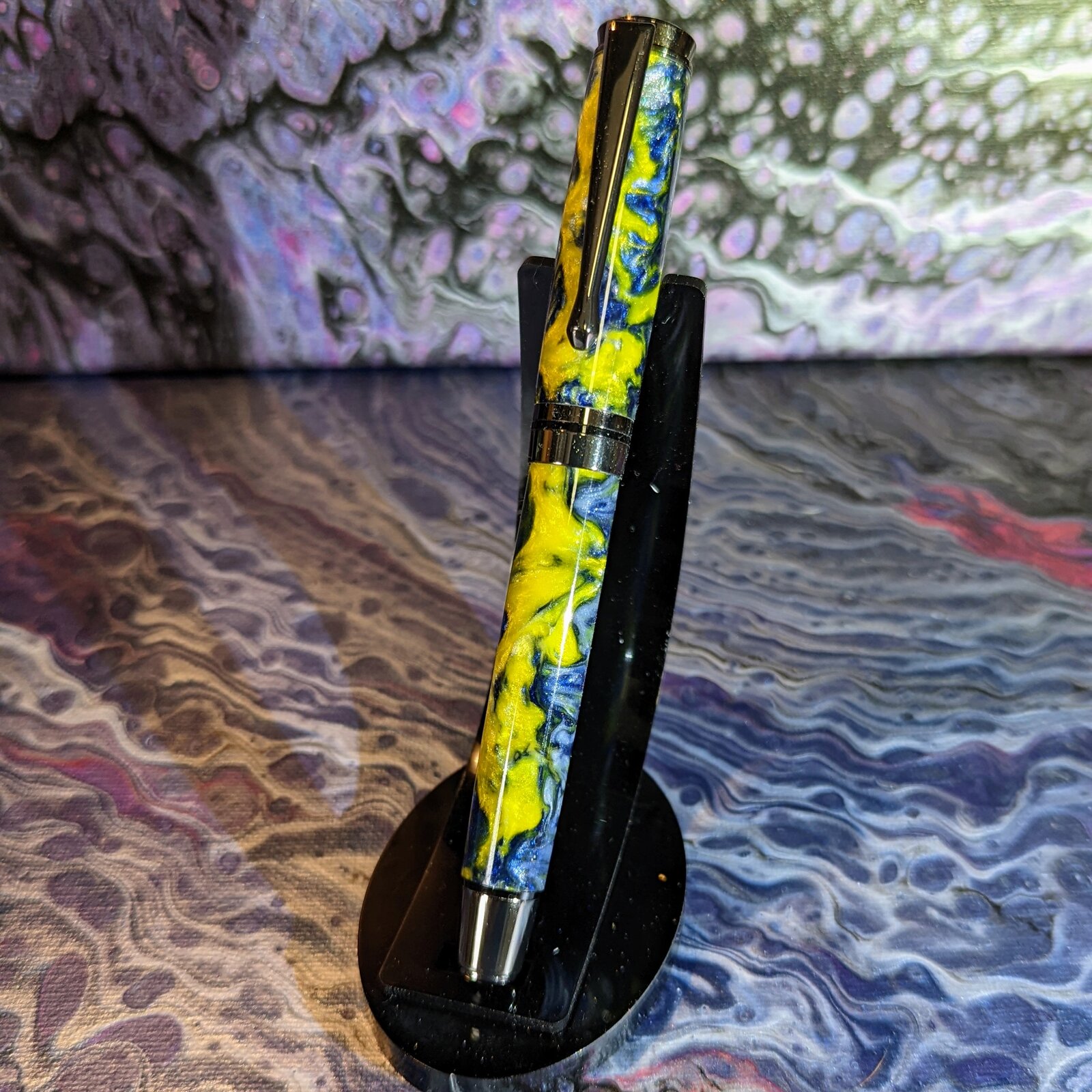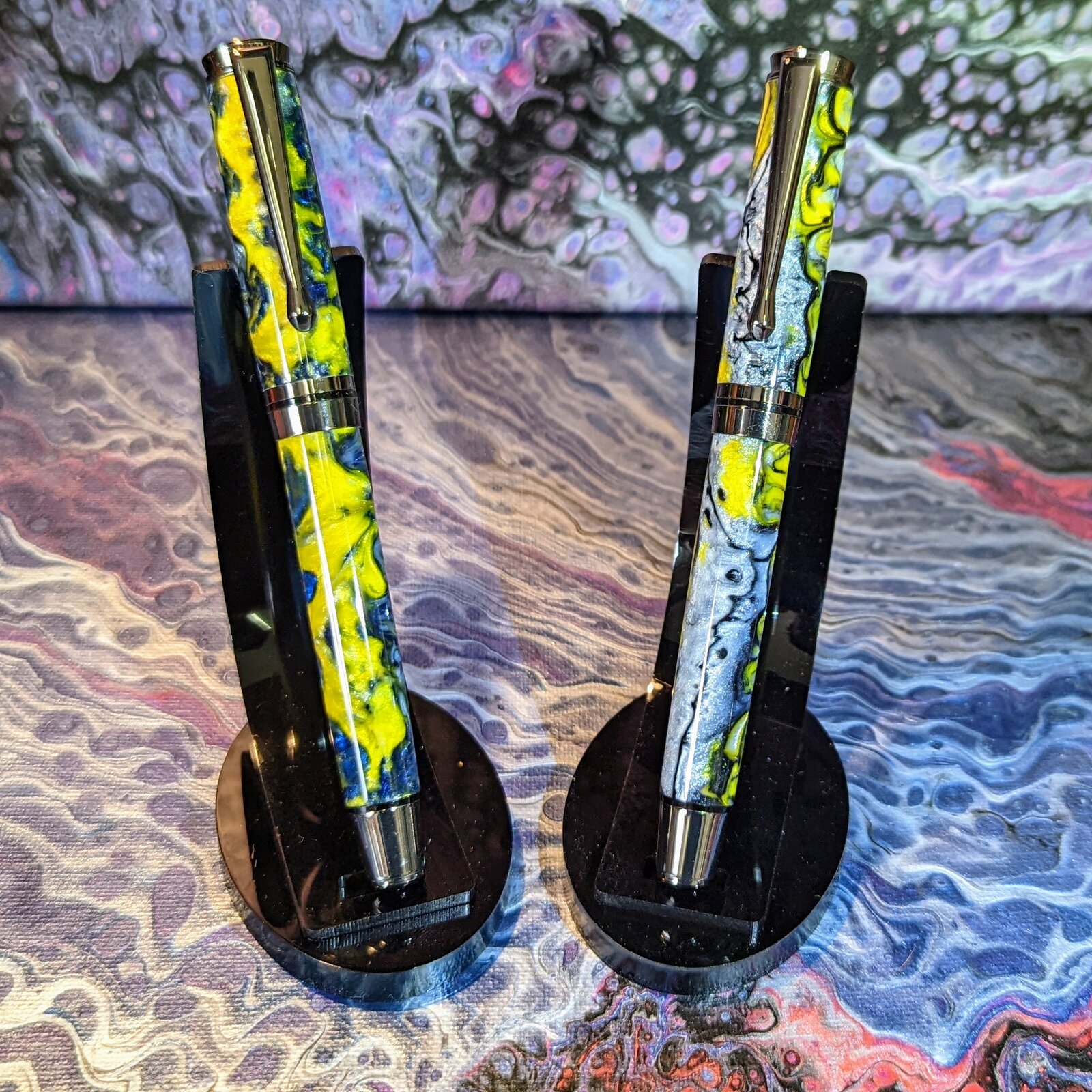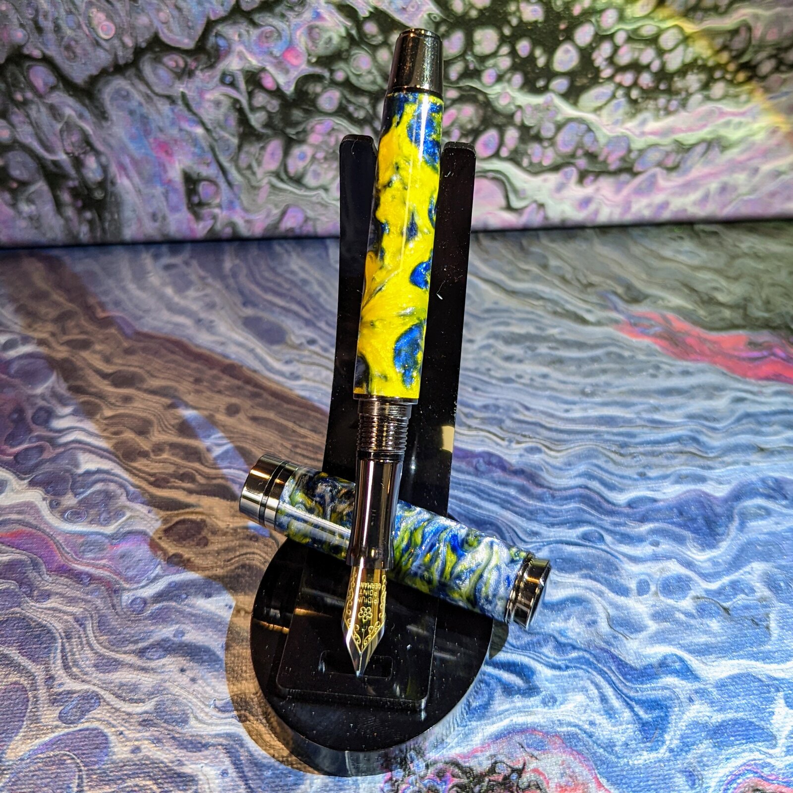 This may be my favorite kit. I cast these in the colors of my favorite teams. I was surprised at how much movement I got in the different colors in each of these. The Blue and Gold pen has Color verse Cat shimmering blue ink. I'm waiting on a bottle of Diamine Sparkling Shadows for the Black and Gold.