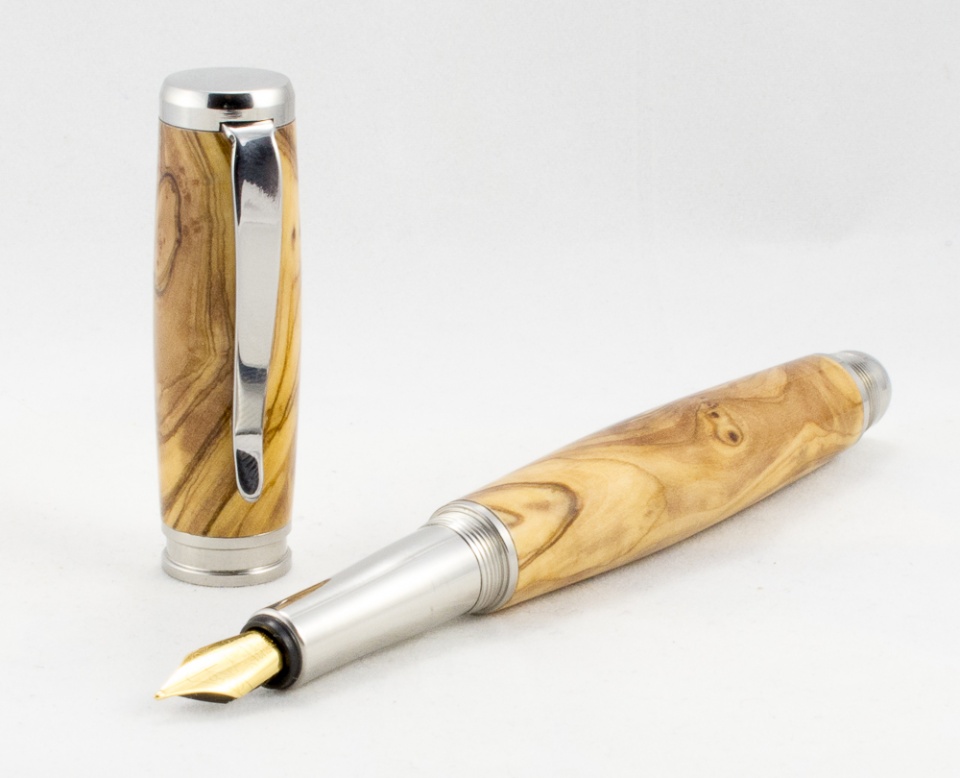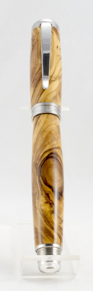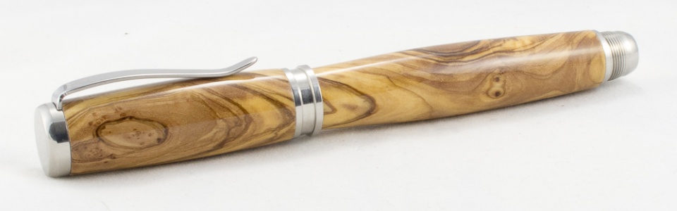 Absolutely Beautiful.This is the most beautiful piece of olive wood I have come across. It is on an stainless steel eagle kit. It was fun seeing the knots come out as i was turning.