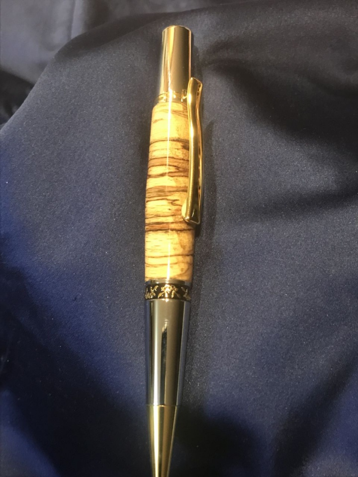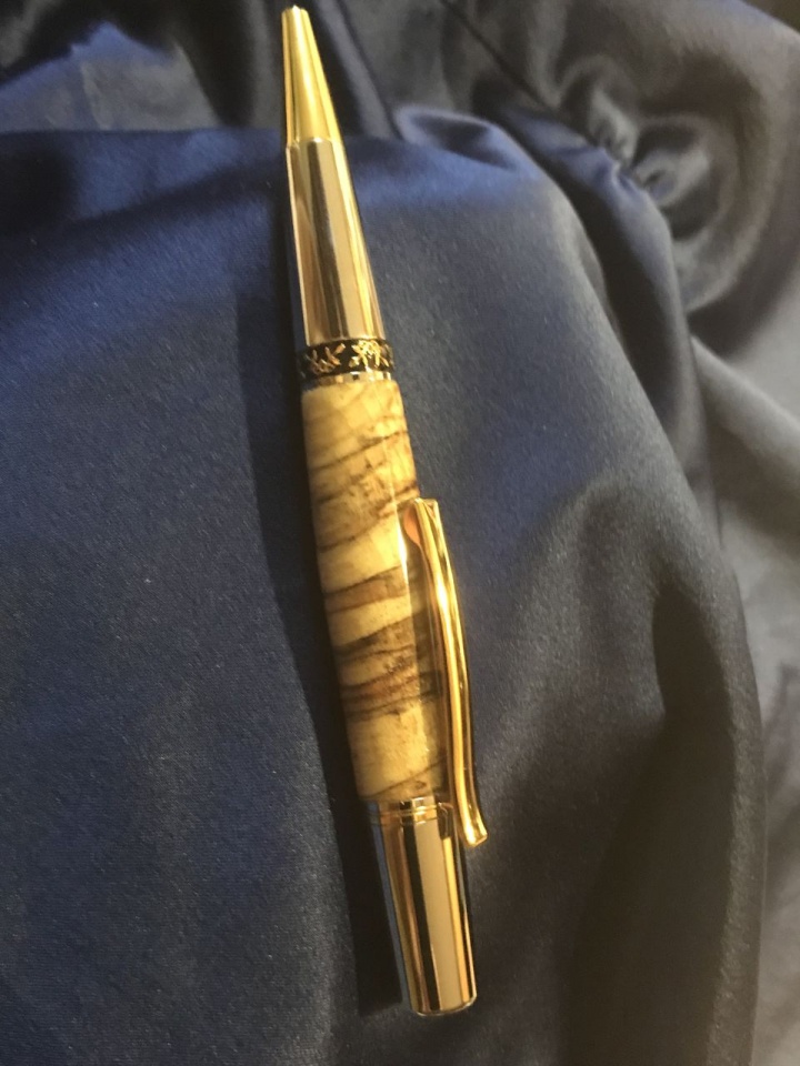 It is spalted yellow birch, cross cut, on an Elegant Aero kit from Exotic Blanks.