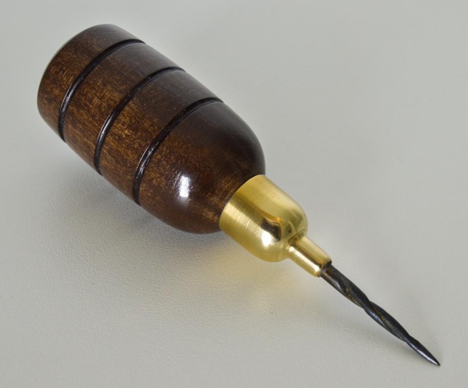 Awl - Made from a broken drill bit, a brass air fitting, and a piece of stained poplar finished with super glue.
