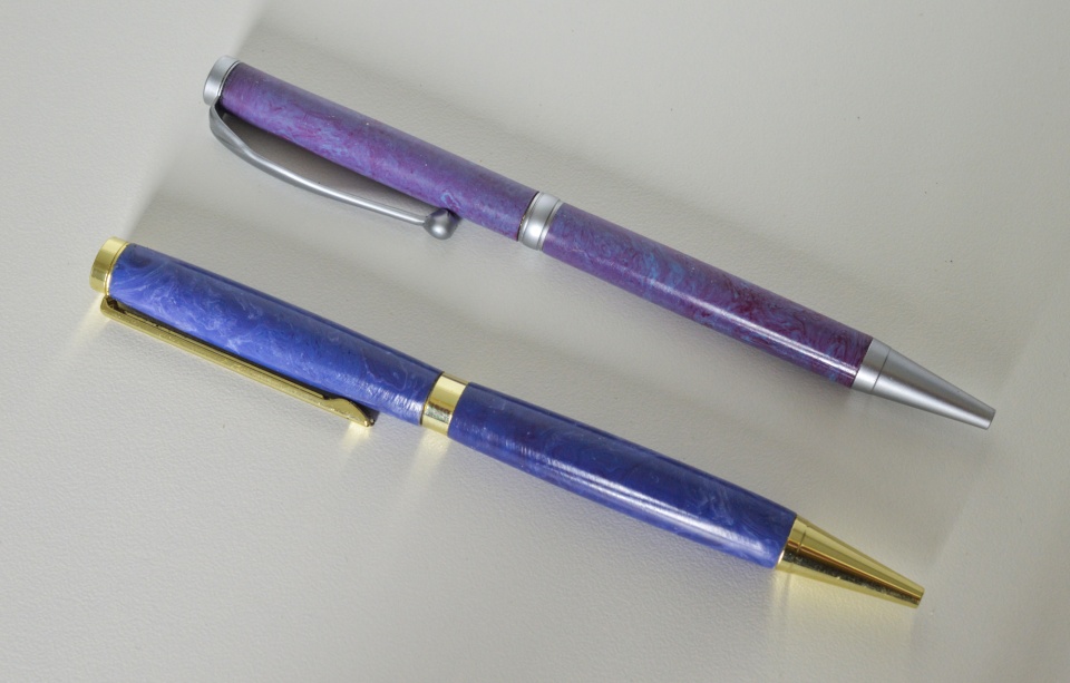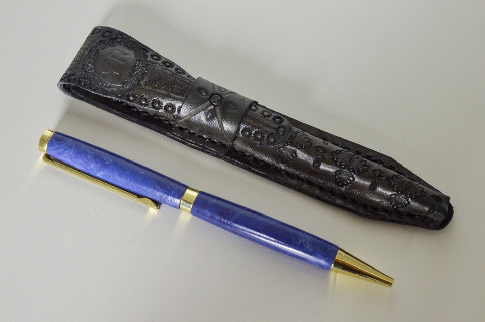 Pens and leather pen case - two slimline pens made from the Rockler pen kits. I cast the resins and turned them down with the lathe. I also made the leather pen case.
