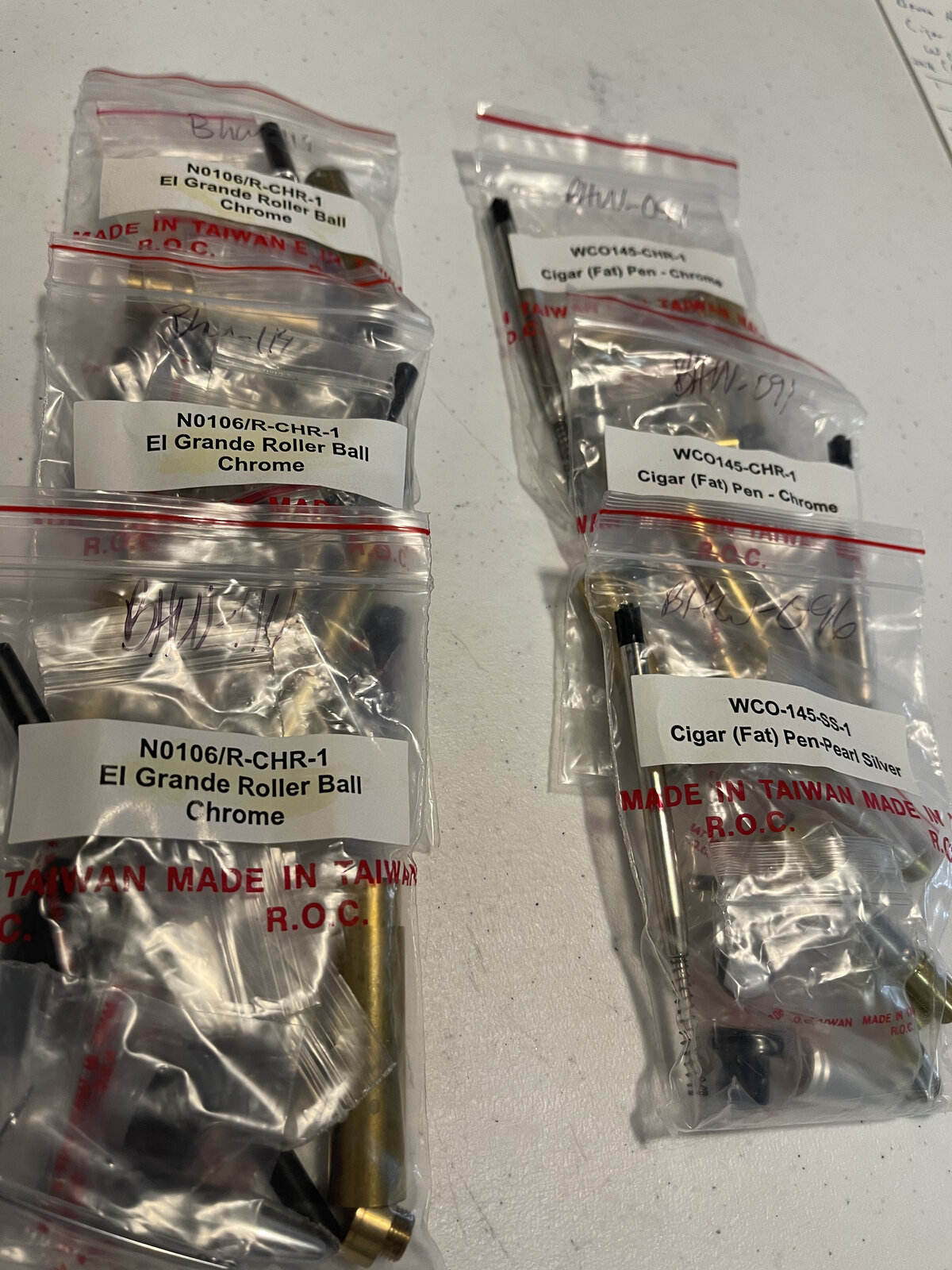 ranchonodinero Member Joined Mar 2, 2008 Messages 262 Location Aledo, Texas Jan 15, 2021 #1 3 cigar pen kits 2 in chrome and 1 in pearl silver and 3 el grande rollerball kits. Shipped USPS flat rate CONUS. Paypal. $25.00 Last of the kits. Attachments IMG_6925.jpeg 366 KB · Views: 303 IMG_6926.jpeg 247 KB · Views: 345 IMG_6927.jpeg 293.2 KB · Views: 295