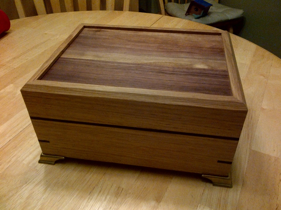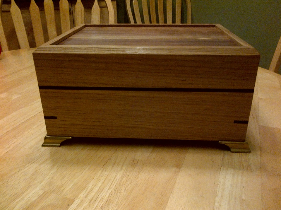 A friend of mine had a brother pass away in an industrial accident a few weeks back and contacted me to build a box to put his ashes in. Needless to say I was beyond honored by the request and that she thought of me and entrusted me with this project. So this is what I came up with. She will be adding a brass plaque afterwards.