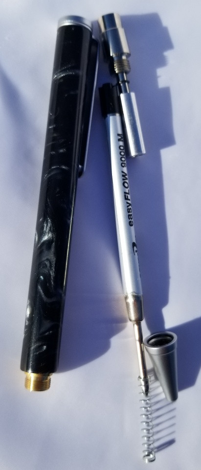 Here is something I started a while ago and never got around to finishing until now. This is a slimline pro click pen kit from PSI. It uses 8mm tubes, a parker refill and a "less than desireable to me" plastic click mechanism.