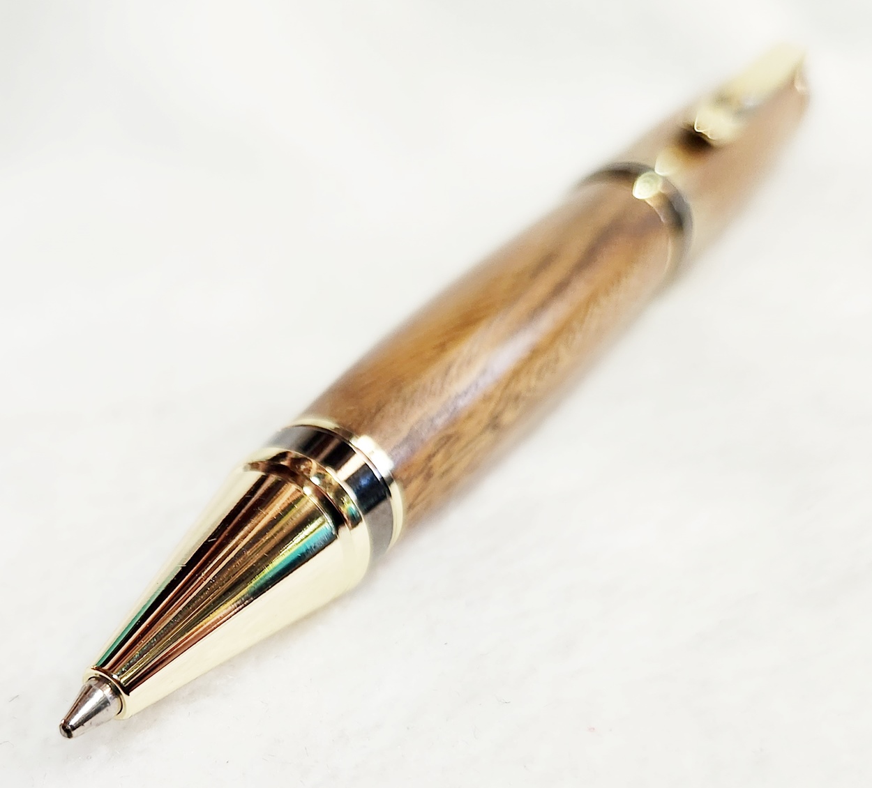 qquake Member Joined Feb 8, 2004 Messages 5,054 Location Northern California Mar 24, 2024 #1 This is a PSI Big Ben (cigar) pen in gunmetal and gold. The wood is lignum vitae from Woodcraft. It is some of the most highly figured lignum vitae I've ever turned. The finish is Pens Plus. Attachments 096.jpg 244.5 KB · Views: 254 097.jpg 276.1 KB · Views: 254 098.jpg 204.4 KB · Views: 251 099.jpg 214.7 KB · Views: 235 100.jpg 246.7 KB · Views: 235 101.jpg 190.5 KB · Views: 236 102.jpg 184.1 KB · Views: 229 103.jpg 291.6 KB · Views: 251 104.jpg 101.4 KB · Views: 250 105.jpg 98 KB · Views: 255