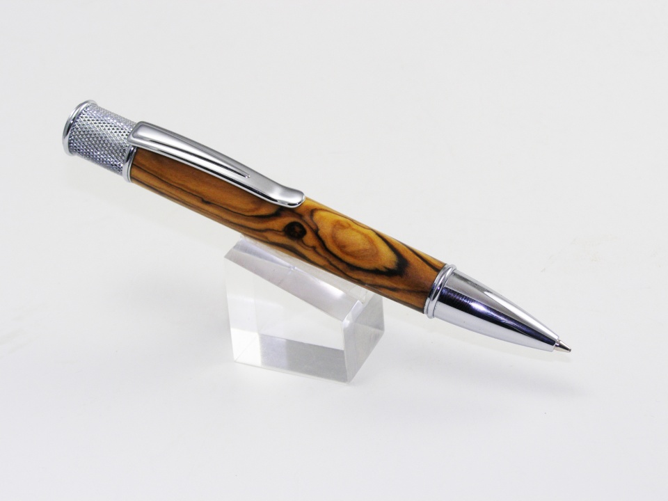 One of the Pretty Wood contest winners used this kit for 2nd place. I was so impressed I wanted a pen using that kit. Found out that CSUSA sold the Artisian Deco kit, but has discontinued it. They had the remaining kits on sale so I got several. I turned one in Bocote, but it just didn't pop. The 2nd one I turned using Olivewood. Sure wish they had not discontinued it. Favorable comments make my chest stick out and constructive criticism makes me work harder.