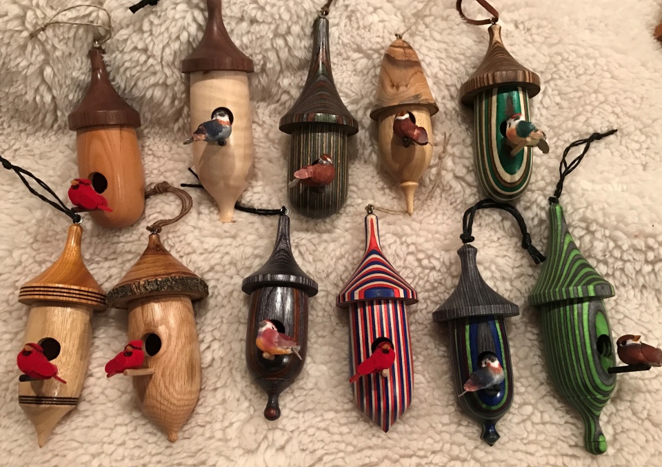 I had to make some birdhouse ornaments for an upcoming show so I decided to spice things up a little bit. I've got the usual hanging ornaments and stands but a little idea popped into my head with the magnetic ornaments. I made a little arm with a magnet and viola!