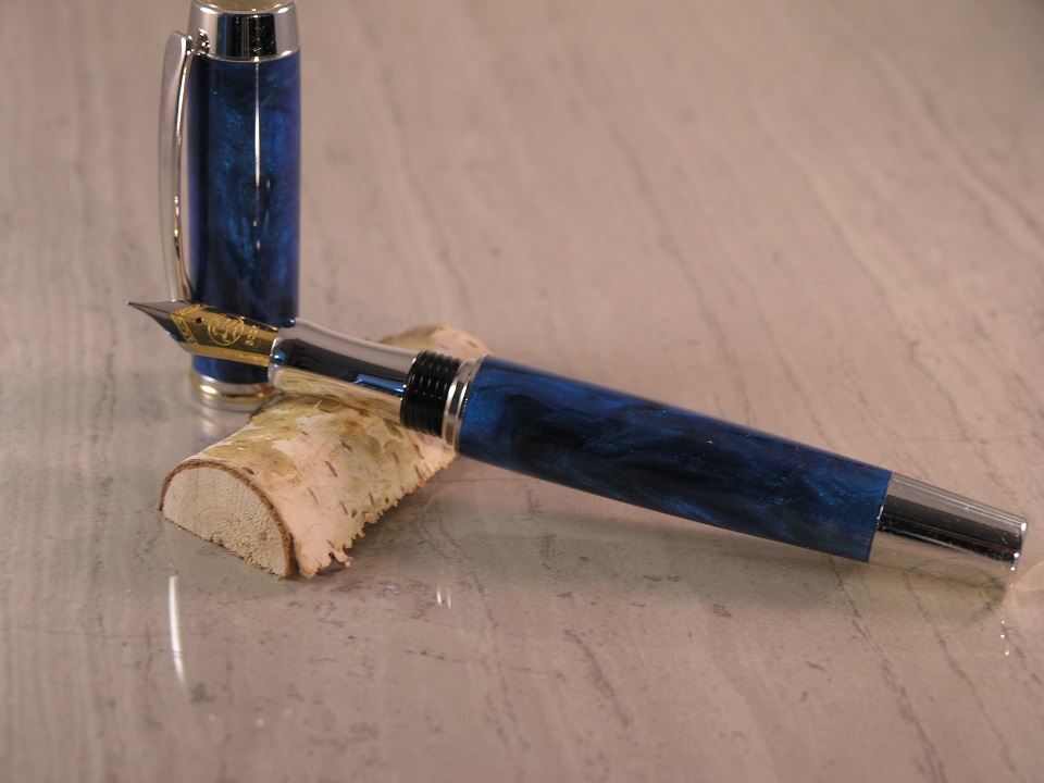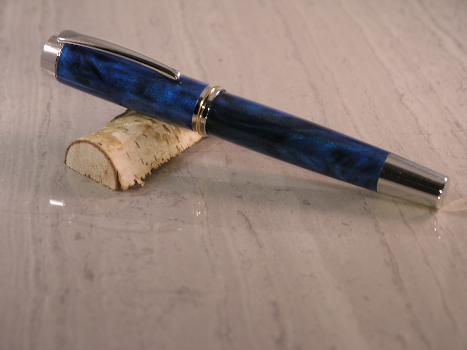 Here's a full Gent that I turned in Black and Blue from Slabs Blanks and Boards. I back painted the blank royal blue and I think it came out nice. I have been on a two color binge lately where my favorite resin blanks are just two colors. There is something about them that seems more classic and refined.