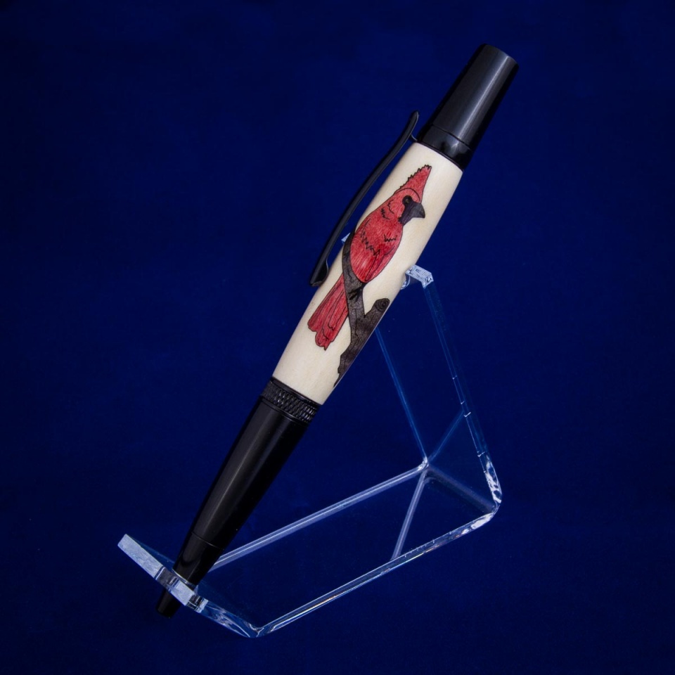 I've done maybe half a dozen laser inlays, and when I took the cardinal out of the box it was all busted up, so I figured I'd have to return it. Emailed Constant and he suggested just going ahead and giving it a whirl. It actually went together just fine, and you can't tell where the breaks were. The only issue was the feet and eye, which are so tiny I wasn't even sure there was supposed to be an inlay for them. I found a speck amongst the crumbles that looked like it might be an eye, so in the eyeball it went. Nothing resembling feet, though, so just filled them with a bit of black epoxy. The fill worked out just fine, and, in fact, I wish I would have filled the eye with a contrasting color, rather than the wood speck.