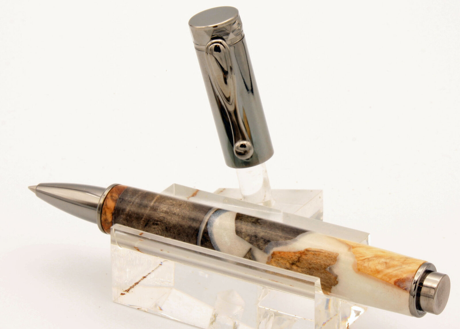 Here is a Black Ti Zen made with a blank I made by casting Buckeye Burl Cutoff & Scraps in pearl white resin. C&C always welcome!