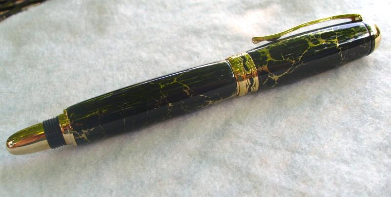 This black with gold martrix Trustone was the hardest stuff I have ever turned, but I think it was worth it. I probably would not have tried it except a family member requested it.