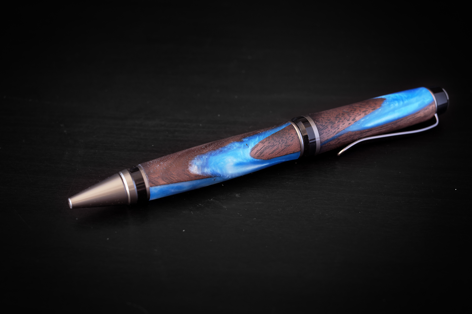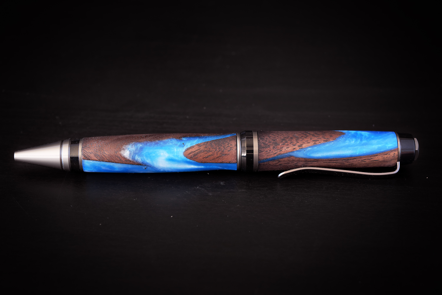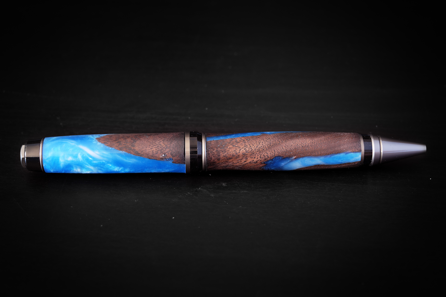 Was challenged by my co-worker/friend Jim to create a hybrid blank. Even though I have been working with resin much longer than I have been turning pens, I was a little bit skeptical at how it would turn out. I gave it the 'ol college try and holy hell am I glad I did. It was a very rewarding project with a stunning result that has me excited to experiment more with resin/wood combinations.