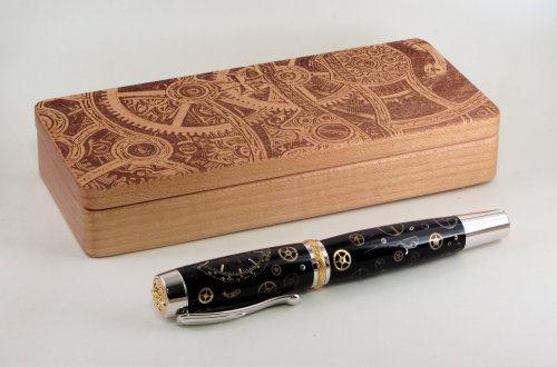 I finally got around to finishing this watch part pen. It took much longer than I'd like because I kept getting last-minute commissions for other pens. (No - I'm NOT complaining!) The blank comes from our very own ladycop322, Michelle, and the box is from Kallenshaan Woods. I think she's a beaut, and I'm looking forward to making more! Questions and comments are always welcome.